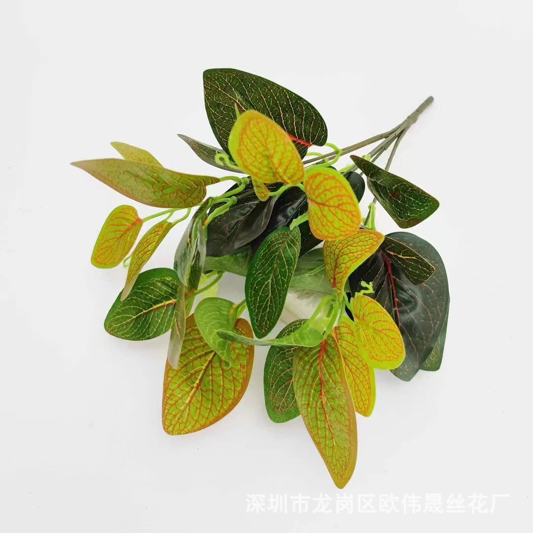 공장 직접 공급 7 pvc 시뮬레이션 녹색 식물 녹색 장미 스타 포인트 가짜 잎 선물 웨딩 룸 장식 장식품