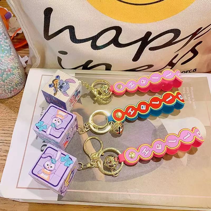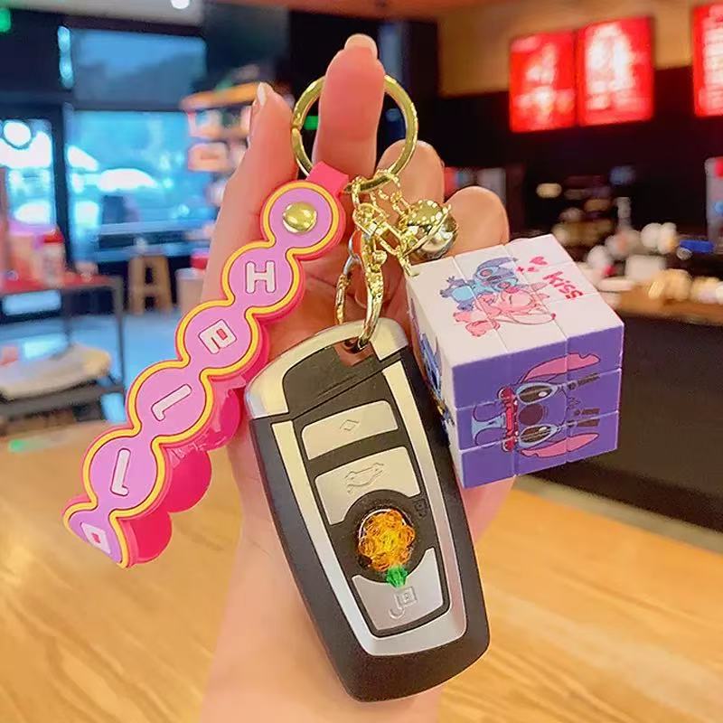 • 스티치 루빅스 큐브 열쇠고리 [핑크 로프]