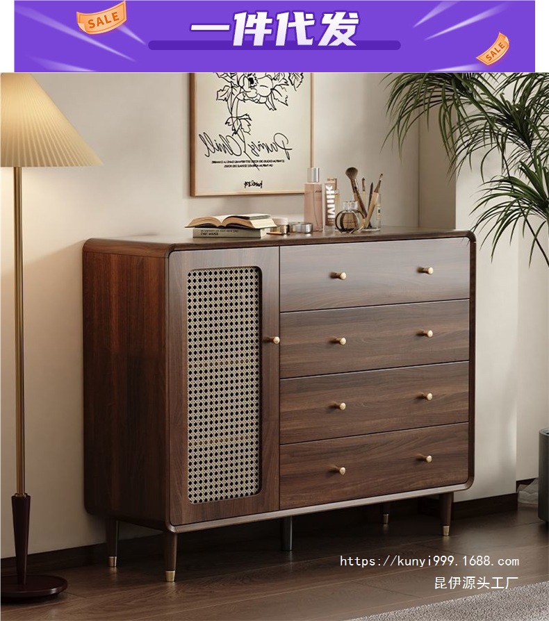 거실 저장 캐비닛 버킷 캐비닛 작은 수직 캐비닛 빈티지 모조 등나무 문 잎 단단한 나무 다리 저장 캐비닛 침실 벽 서랍