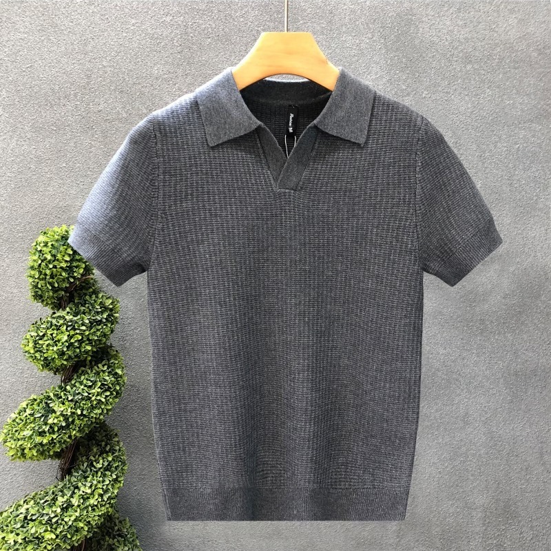 남성용 심플 캐주얼 라펠 니트 폴로 셔츠 여름 청소년 패션 개성 쿠바 칼라 반팔 티셔츠 남성용스토어 가기