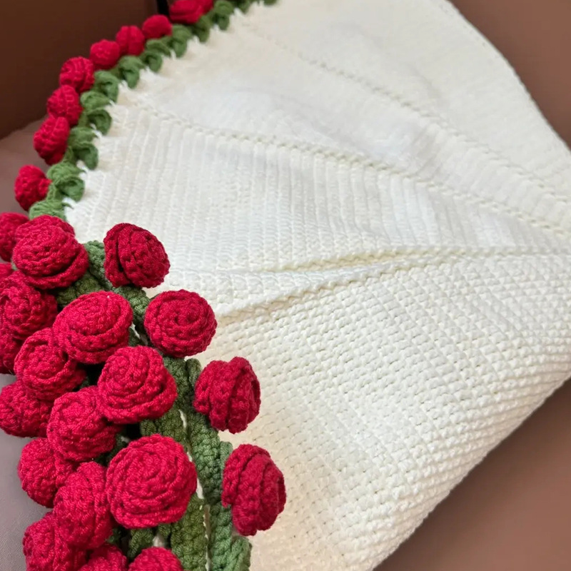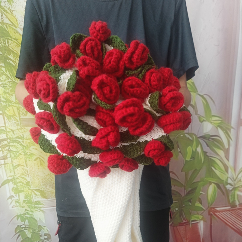 완성된 핸드메이드 울 부케 담요, 뜨개질된 은방울꽃 장미 담요를 꽃다발로 변신시켜 여신에게 창의적인 선물로 선물하세요.스토어 가기