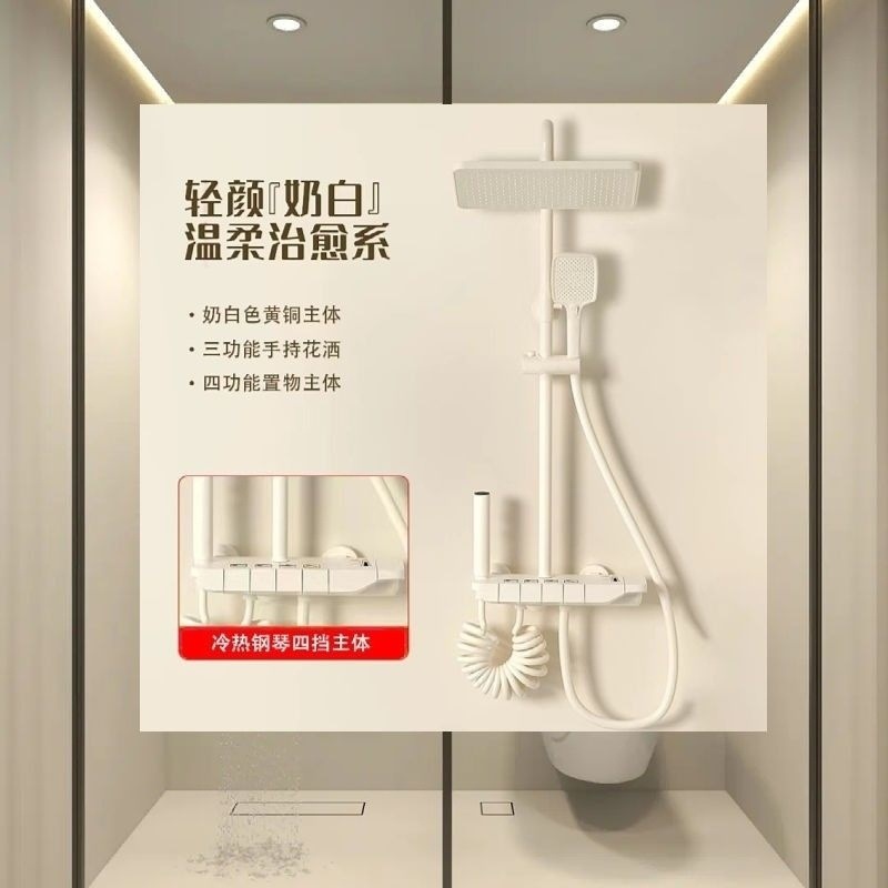 새로운 유니버설 크림 화이트 모든 구리 샤워 샤워 세트 디지털 디스플레이 일정한 온도 욕실 홈 피아노 부스터 노즐스토어 가기