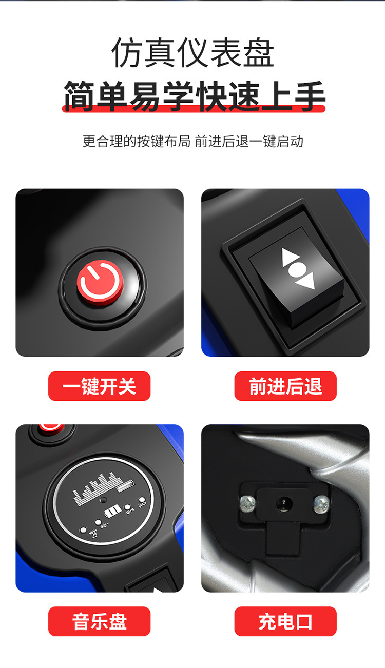 • 보석 블루 + 550 모터 + 휴대폰 블루투스 음악 - [12V24V + 손으로 조이는 스로틀 발광 휠 가죽 시트]