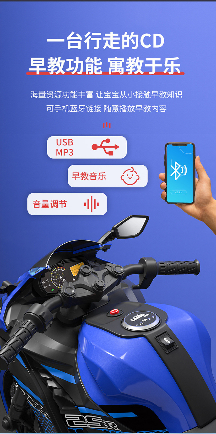 • 보석 블루 + 550 모터 + 휴대폰 블루투스 음악 - [12V7 + 손으로 조이는 스로틀 발광 휠]
