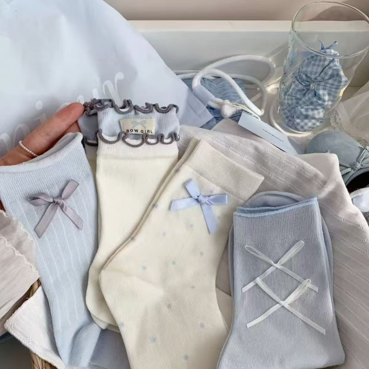 • 미드 종아리 양말 [컬러 레이스 리본 스타일]