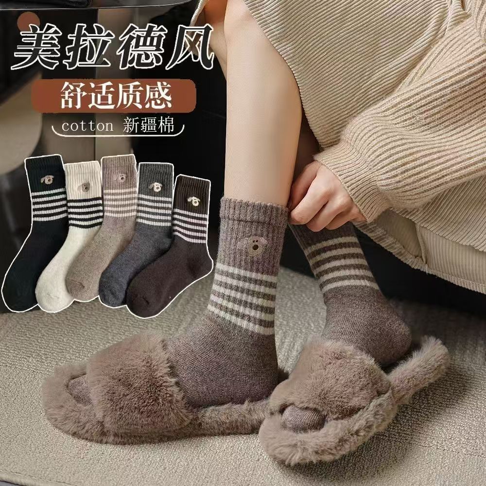 • 종아리 중간 양말 [두꺼운 5개 스타일]