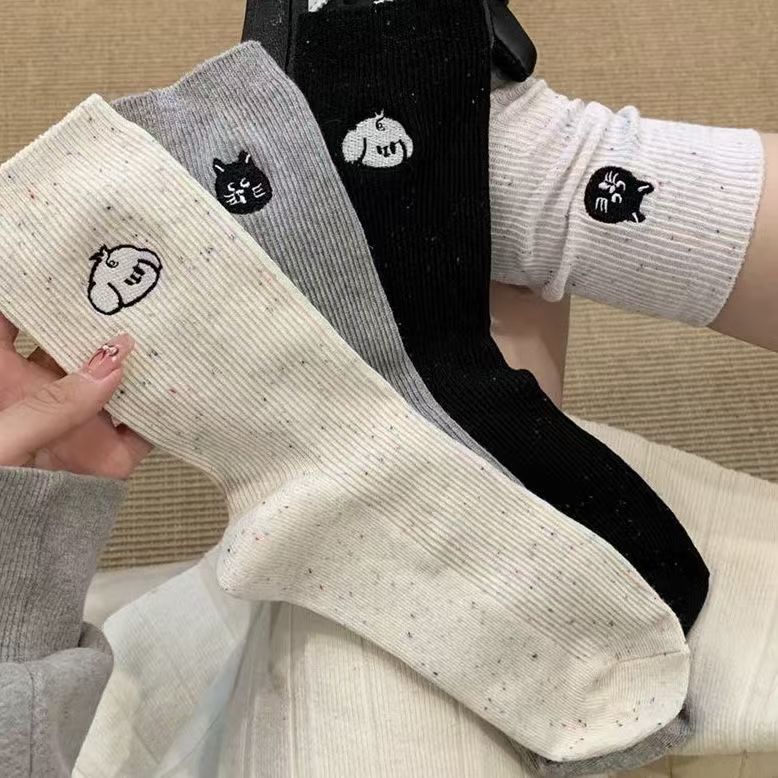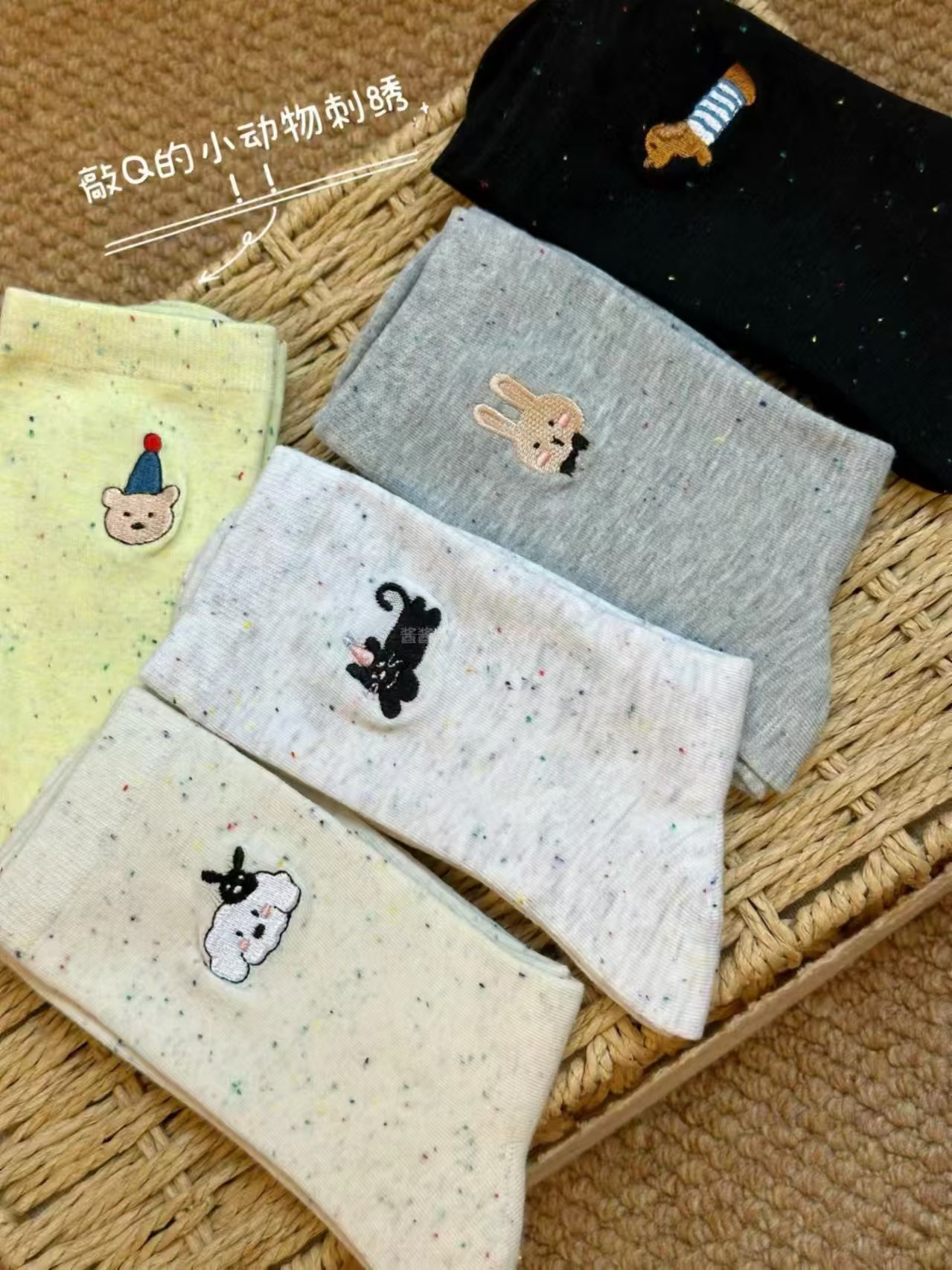• 종아리 중간 양말 [점 모래 작은 동물 스타일]