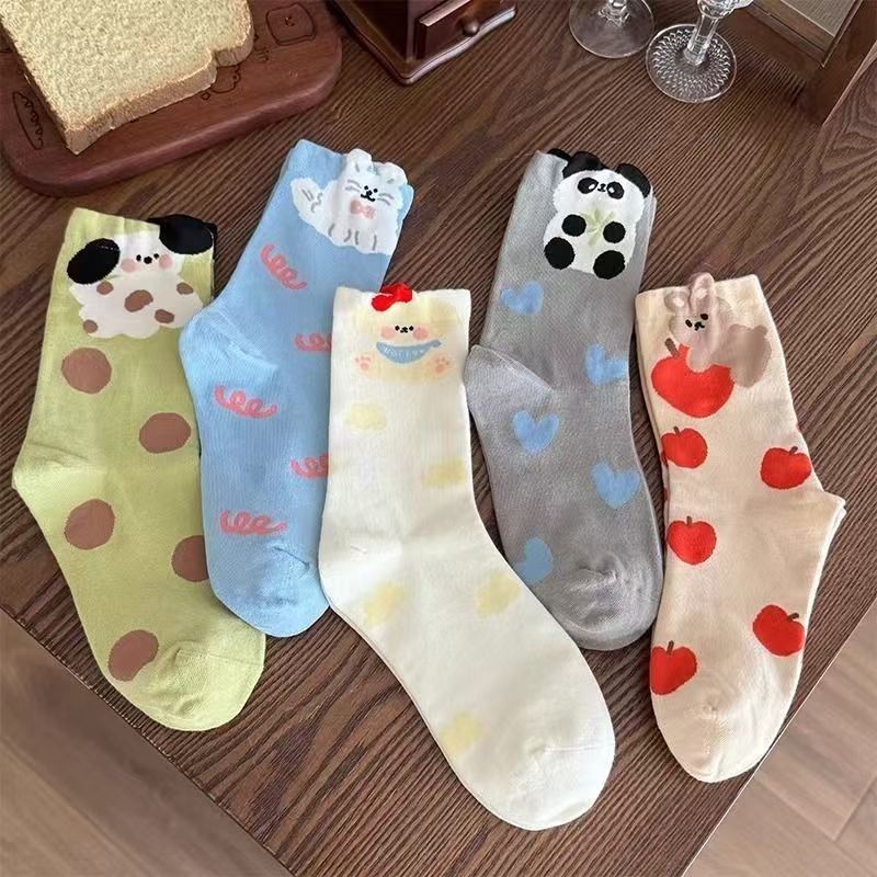 • 종아리 중간 양말 [귀여운 만화 동물]
