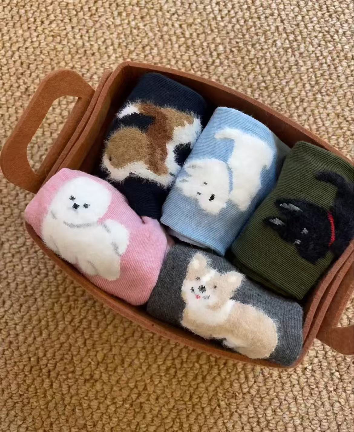 • 미드 종아리 양말 [밍크 벨벳 애니멀 스타일]