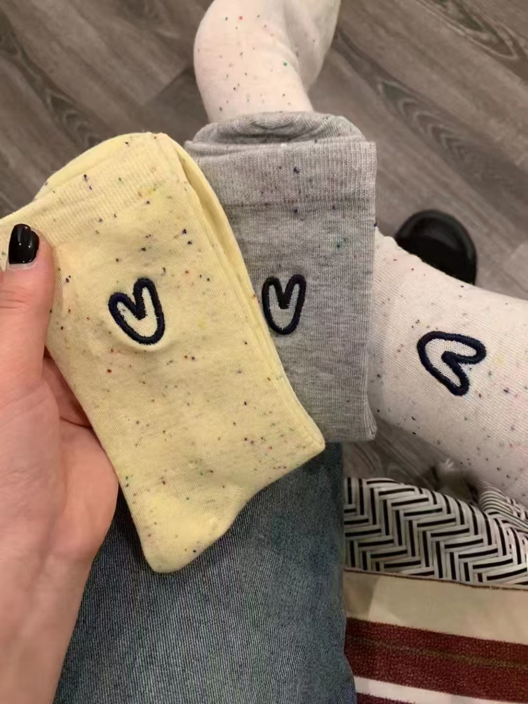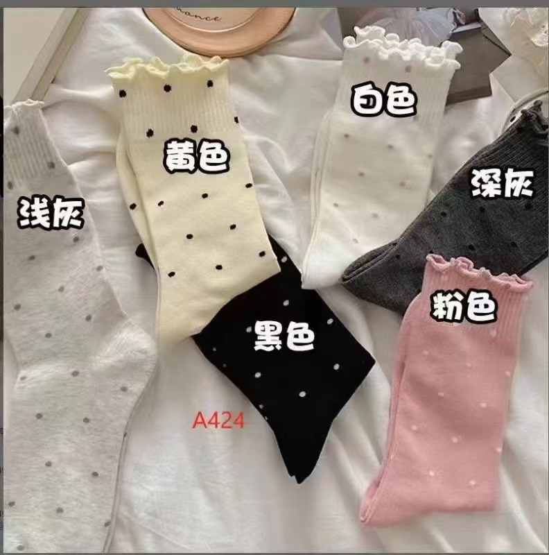• 미드 종아리 양말 [솔리드 컬러 도트 양말]