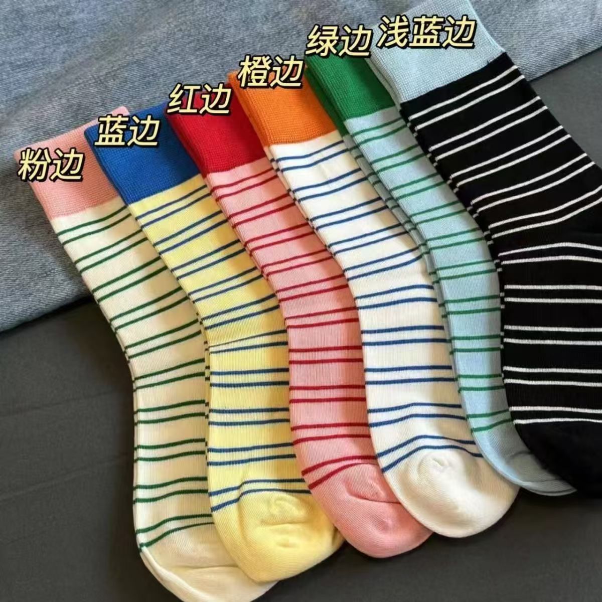 • 종아리 중간 양말 [도파민 스트라이프 양말]