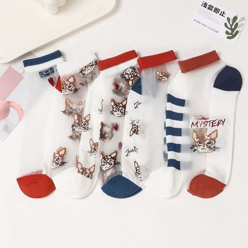 • 미드 종아리 양말 [솔리드 컬러 키티캣 스타일]