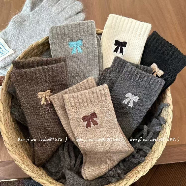 • 미드 종아리 양말 [두꺼운 솔리드 컬러 리본]
