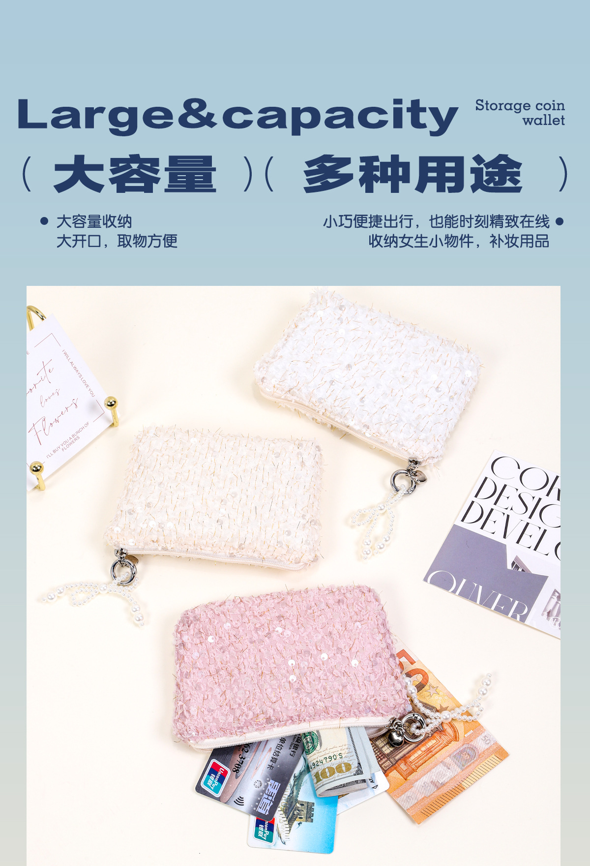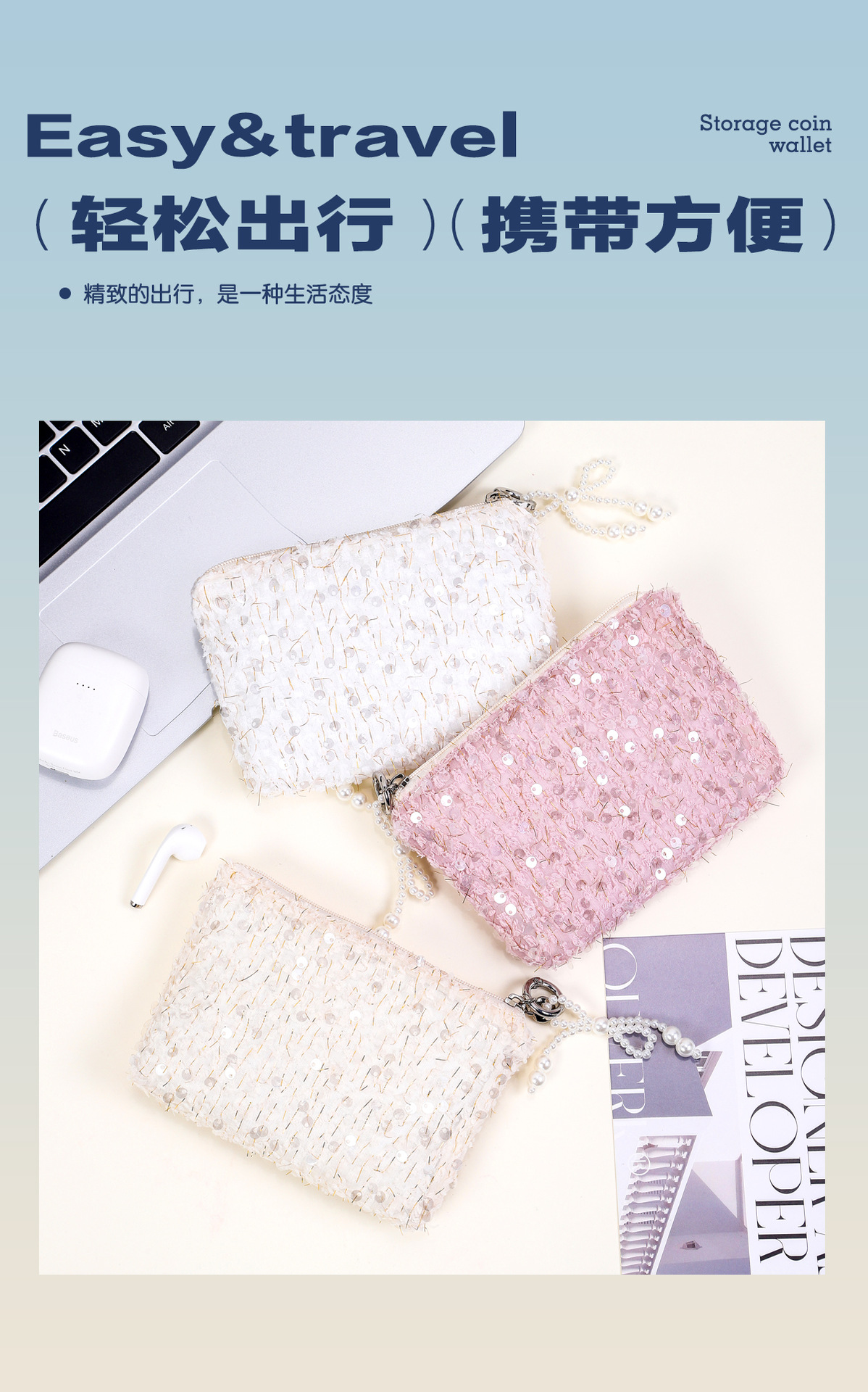 Sequin Coin Purse 패션 여성 INS 스타일 여행 보관 가방 절묘한 하이 엔드 센스 휴대용 세련된 핸드 워시 백스토어 가기
