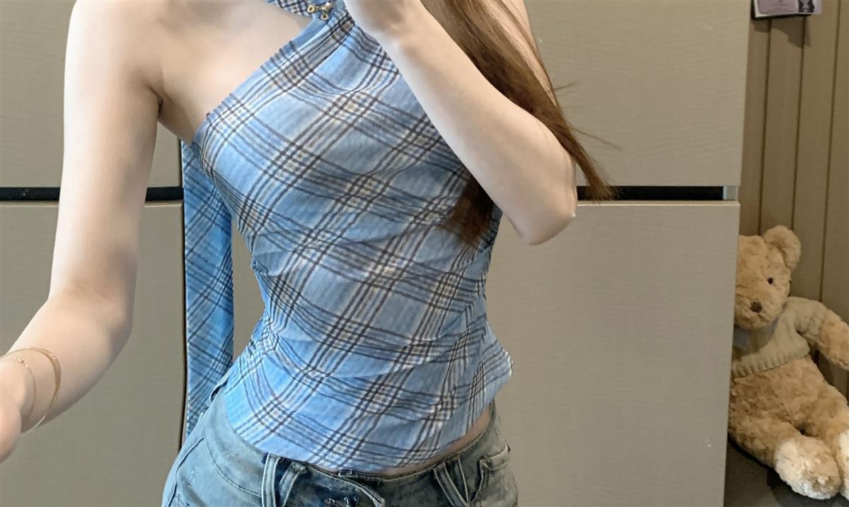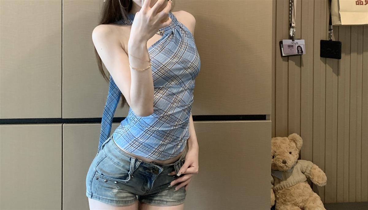 핫걸 스타일 패턴 리본 홀터넥 캐미솔 여성 여름 스타일 섹시한 짧은 슬림핏 탑스토어 가기