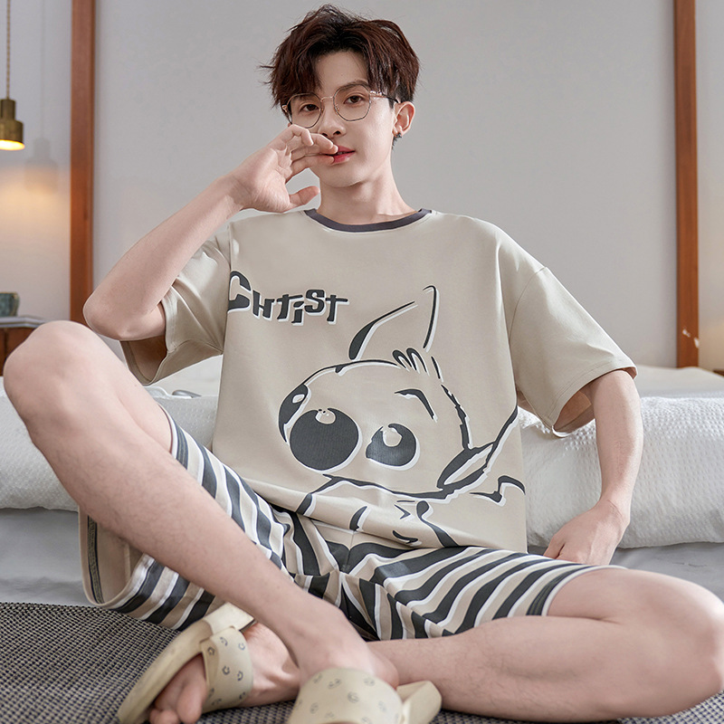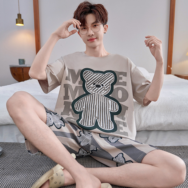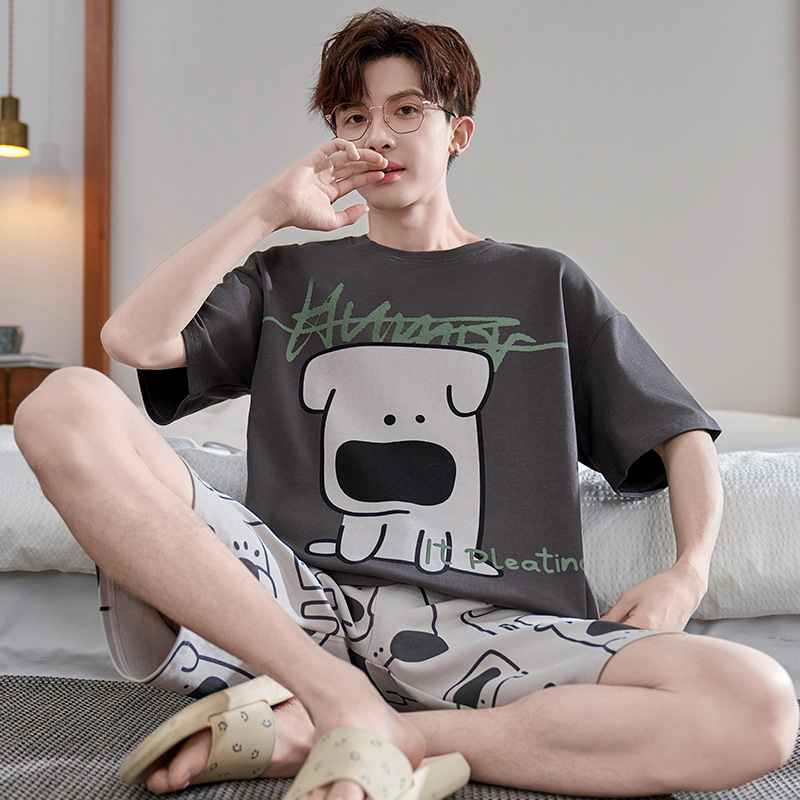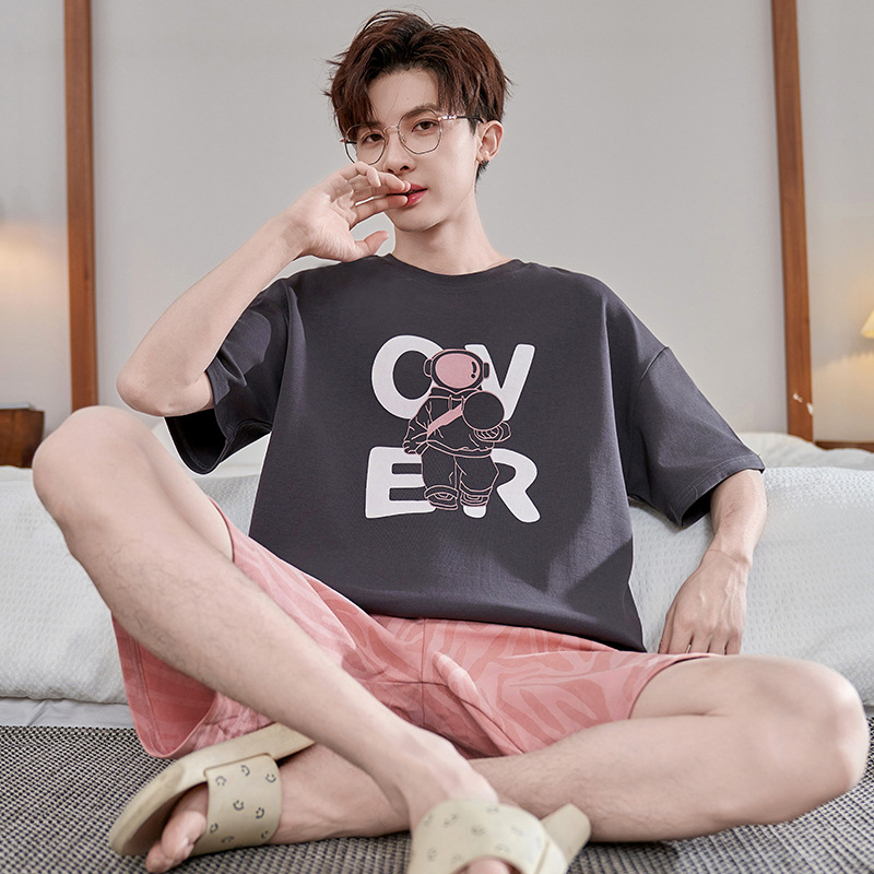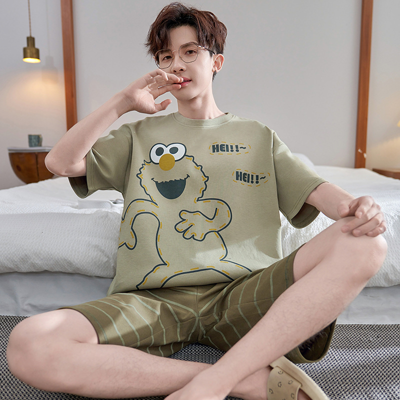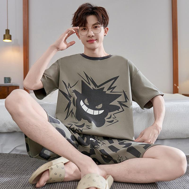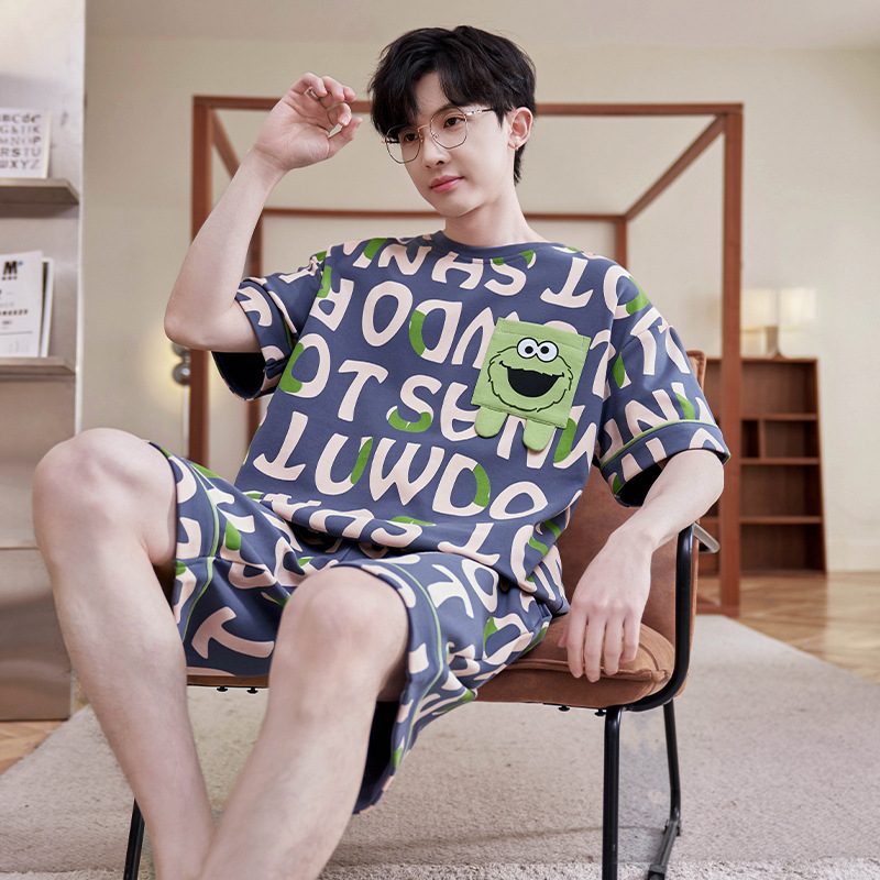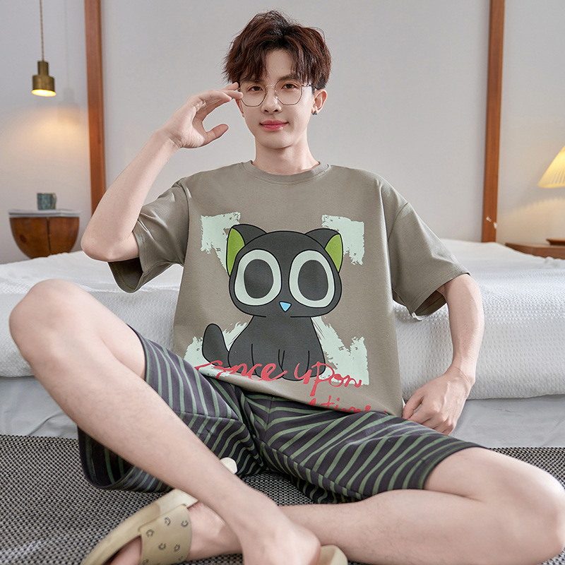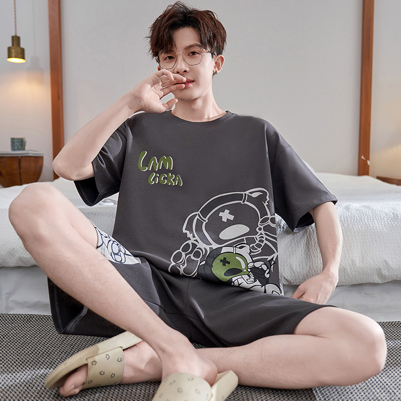 남성 잠옷 여름 2025 새로운 순수 코튼 반팔 반바지 홈웨어 만화 캐주얼 청소년 학생 정장스토어 가기