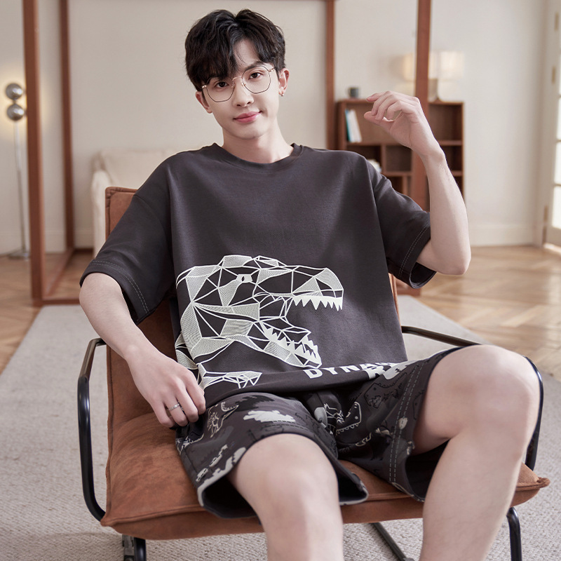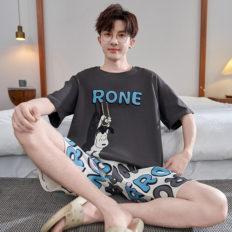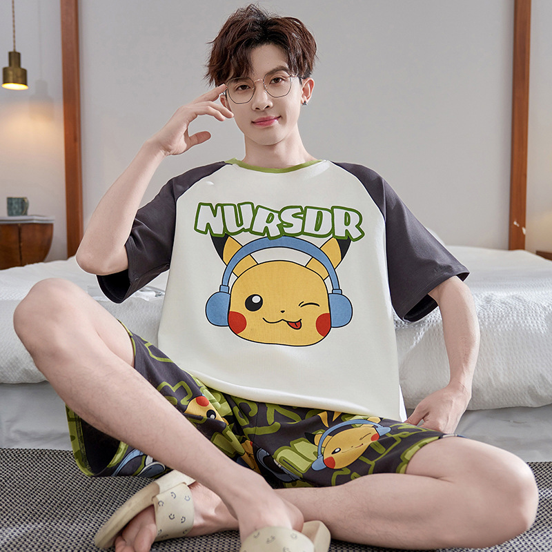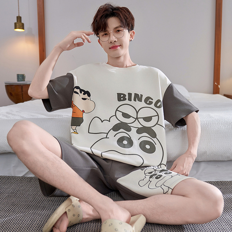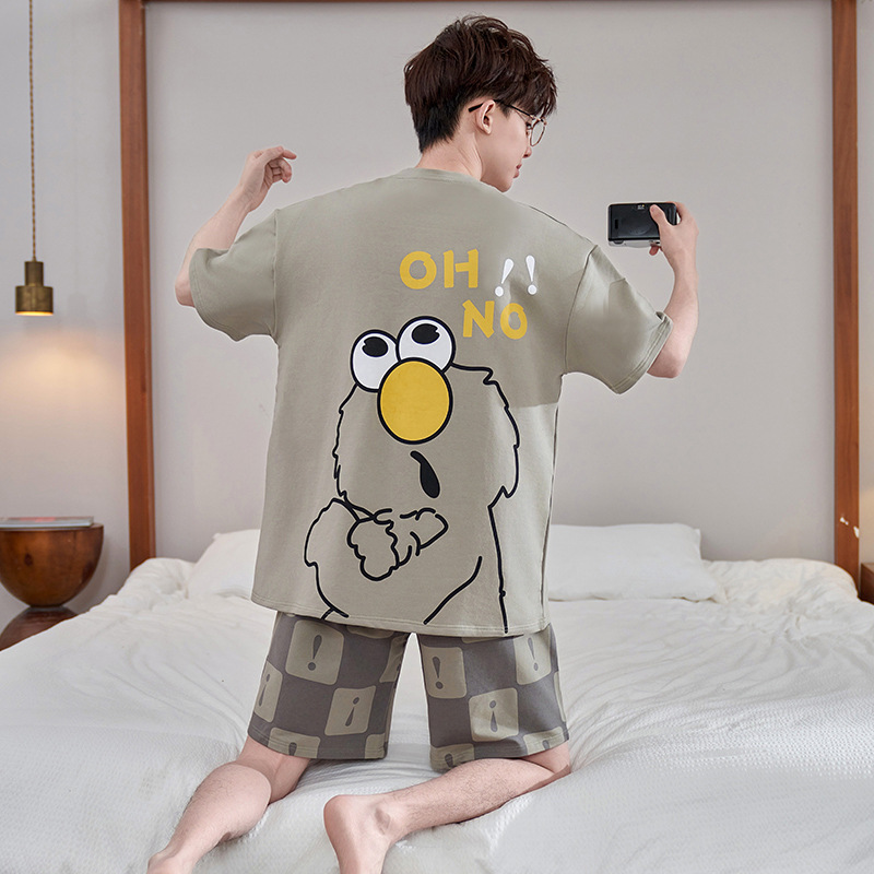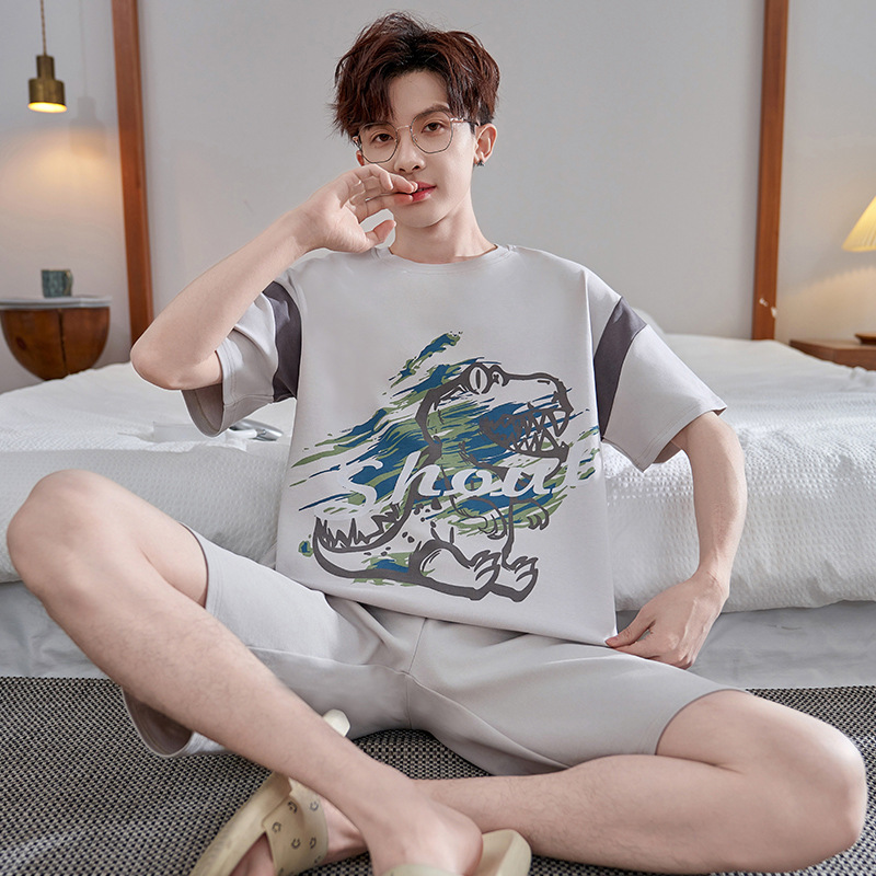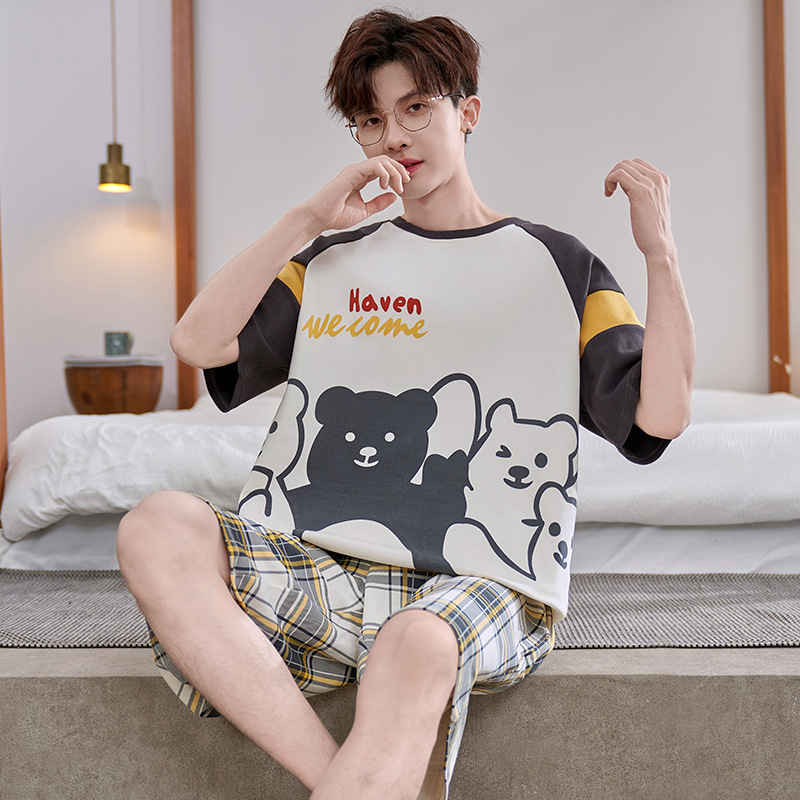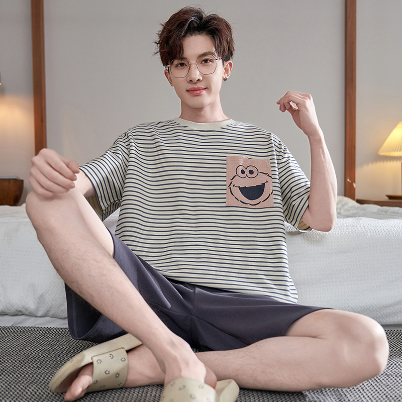 남성 잠옷 여름 2025 새로운 순수 코튼 반팔 반바지 홈웨어 만화 캐주얼 청소년 학생 정장스토어 가기