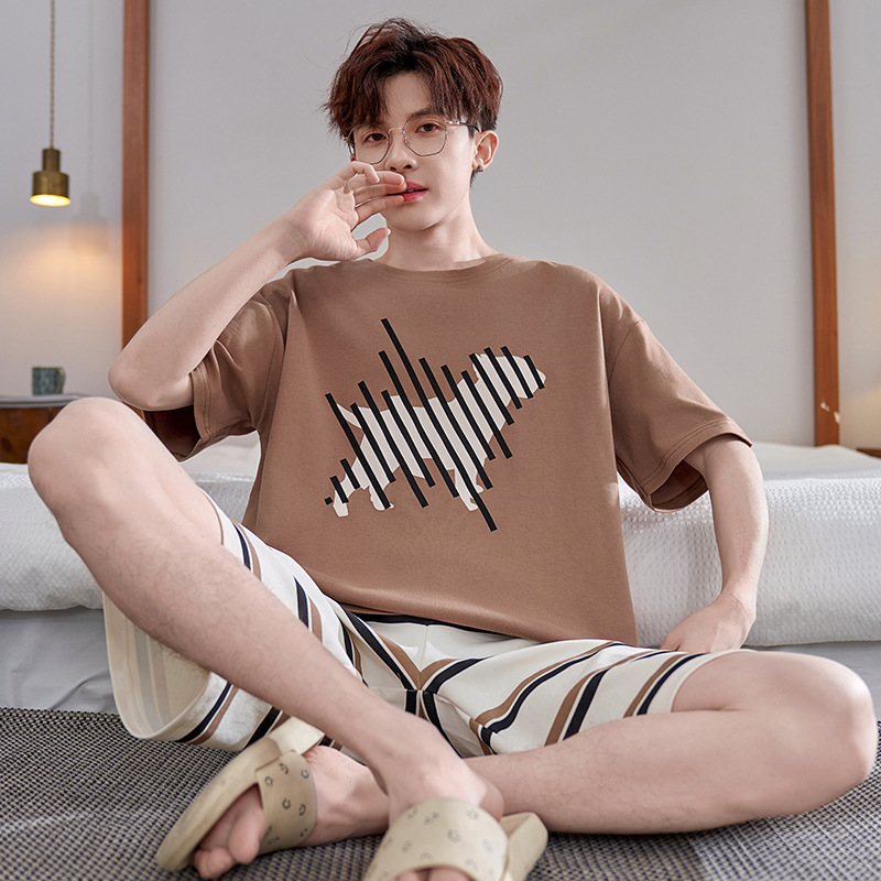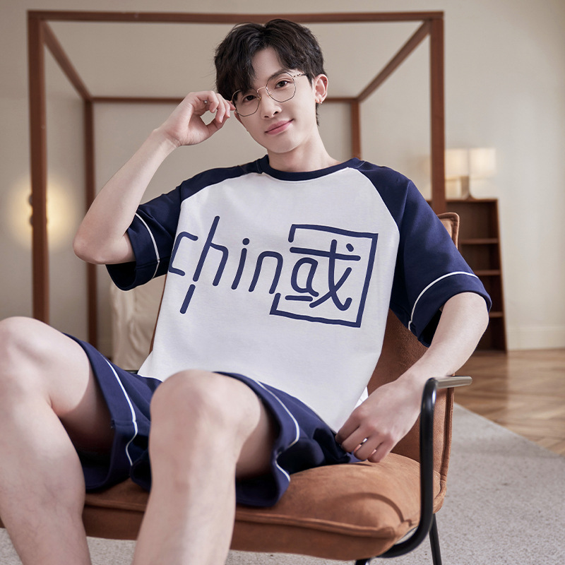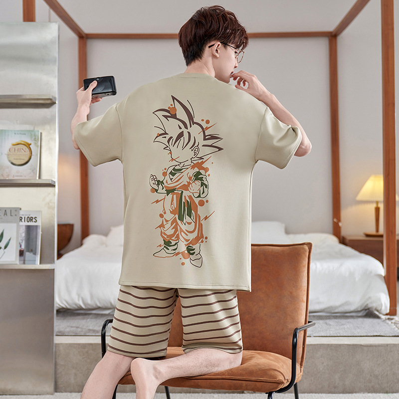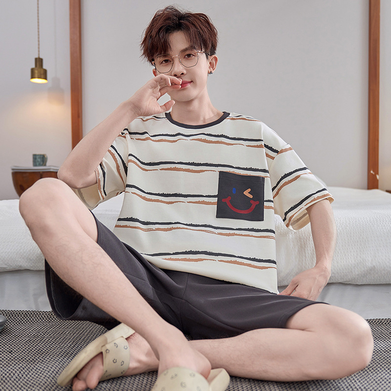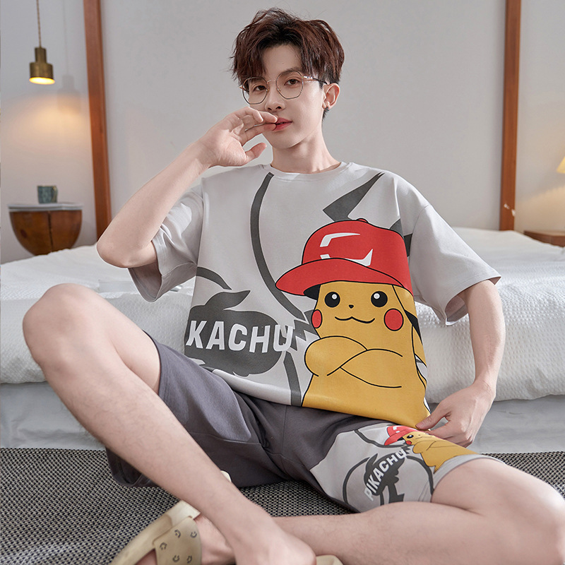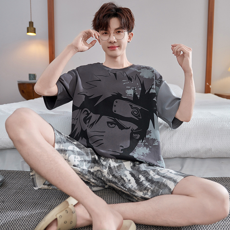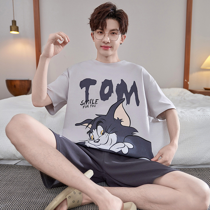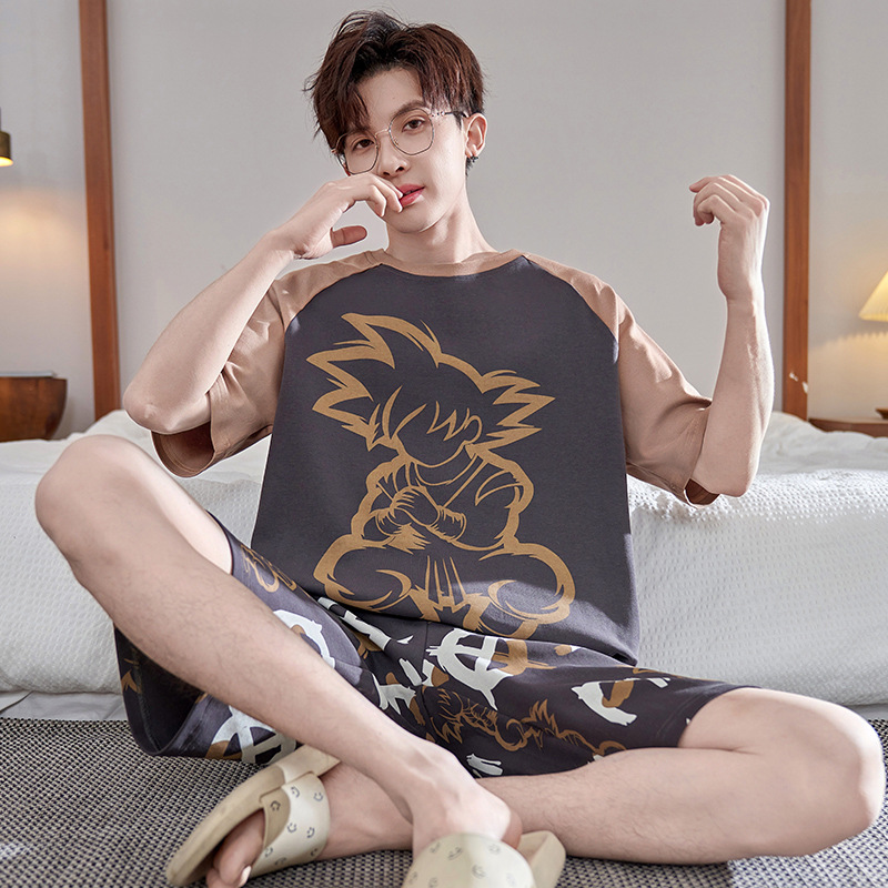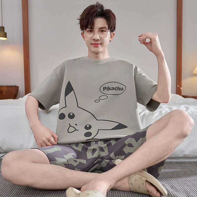 남성 잠옷 여름 2025 새로운 순수 코튼 반팔 반바지 홈웨어 만화 캐주얼 청소년 학생 정장스토어 가기