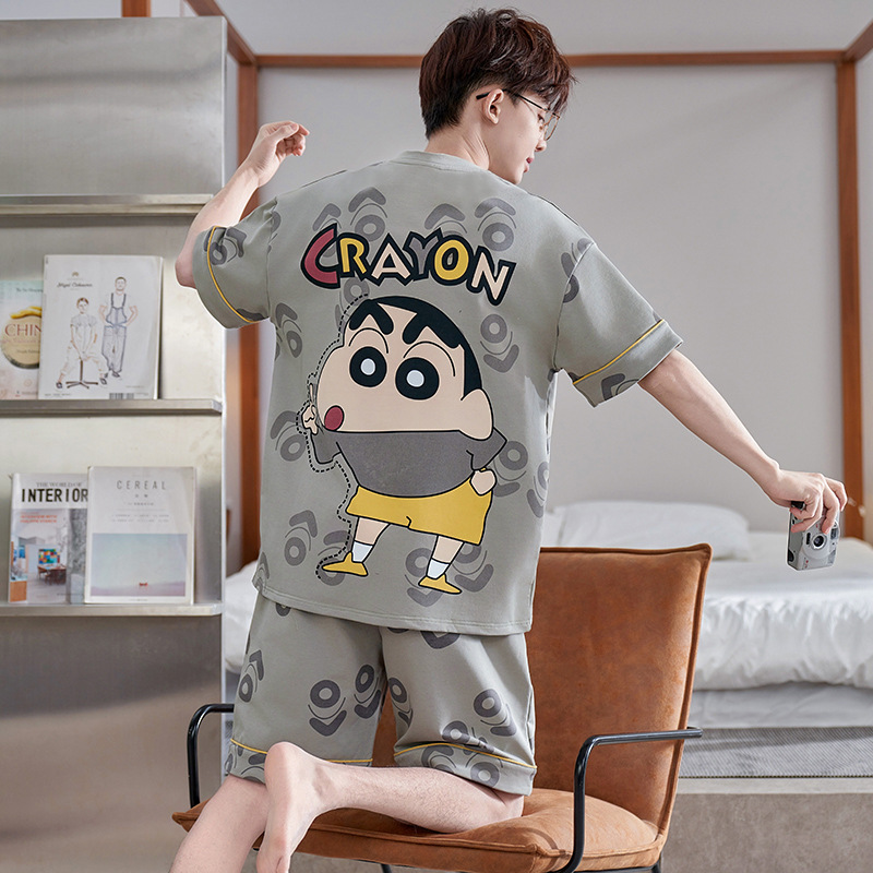 남성 잠옷 여름 2025 새로운 순수 코튼 반팔 반바지 홈웨어 만화 캐주얼 청소년 학생 정장