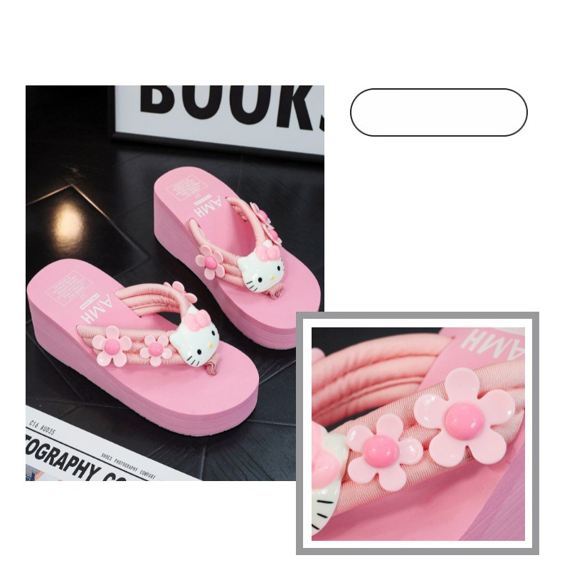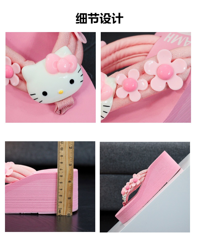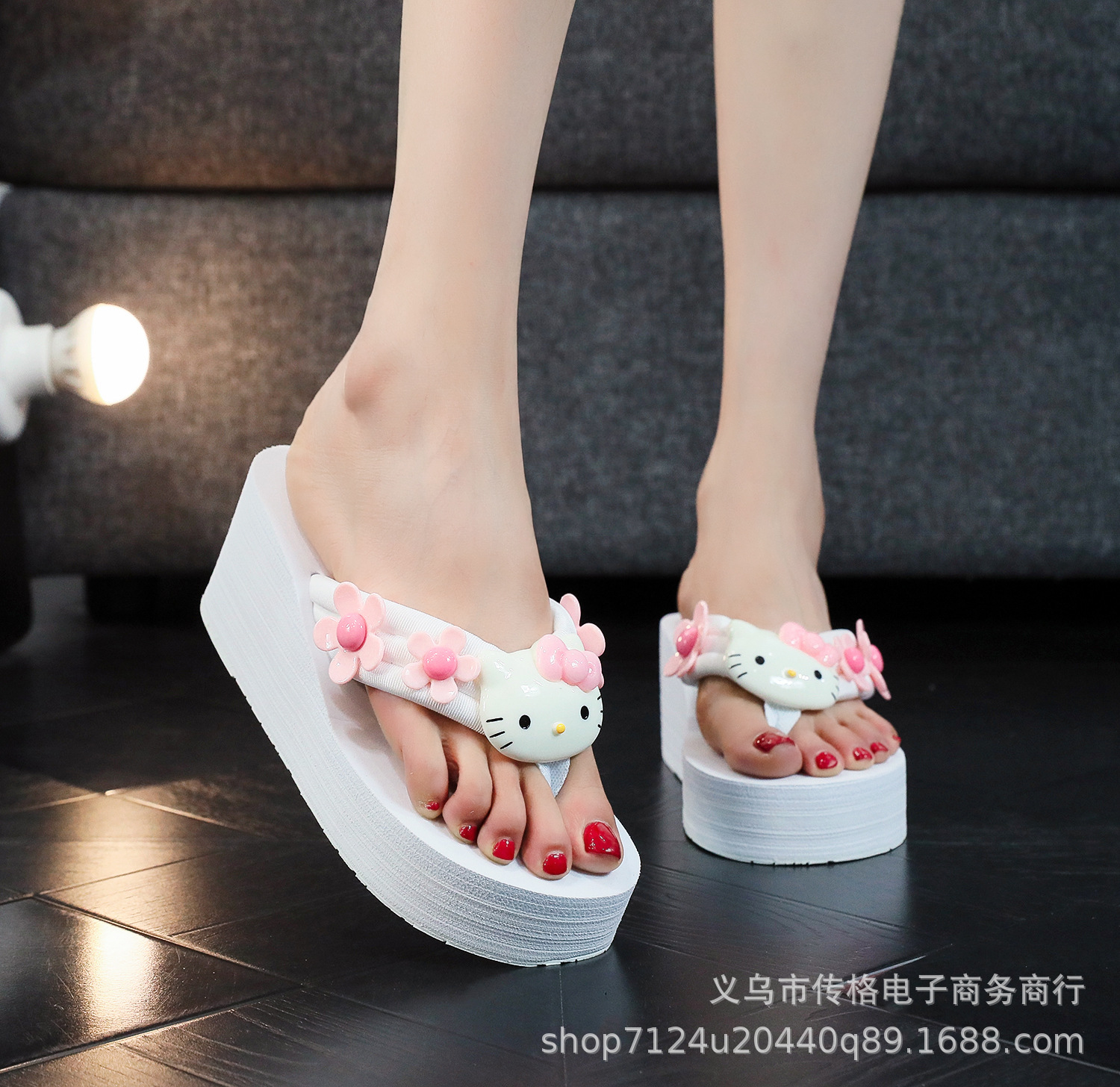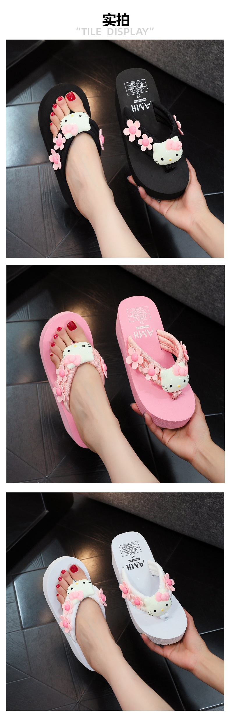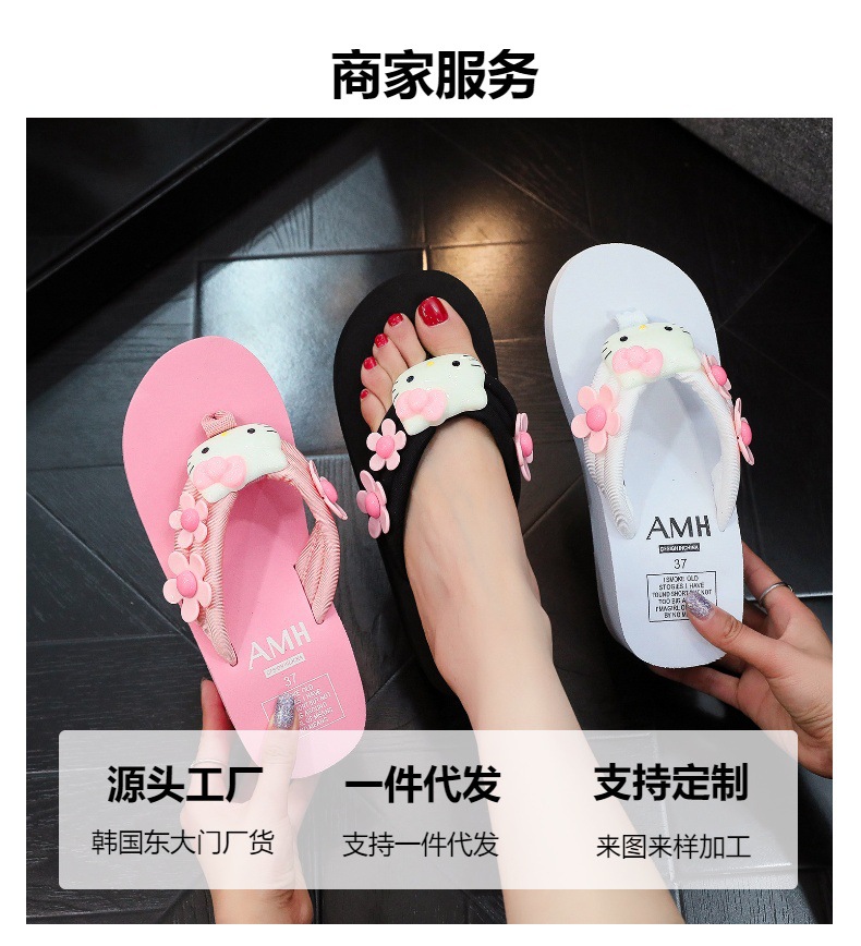 Ins 여름 새로운 데이지 플라워 플립 플롭 키티 키티 키티 라인스톤 샌들 여성용 클립 토 웨지 비치 슈즈