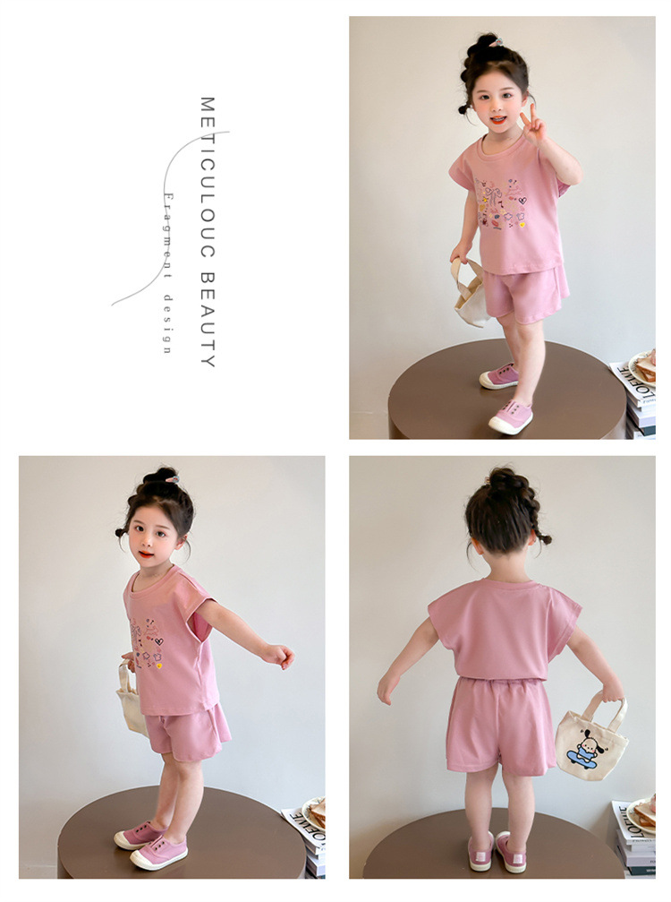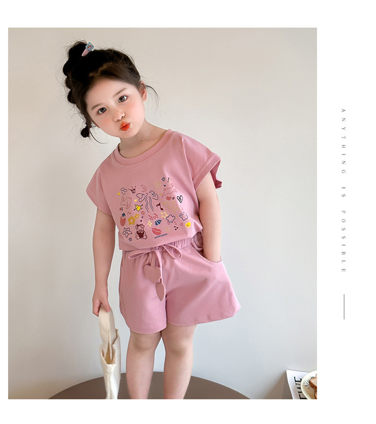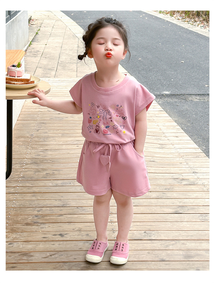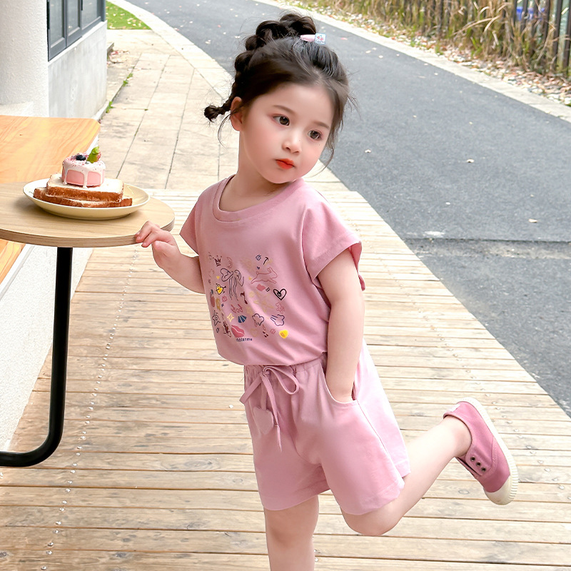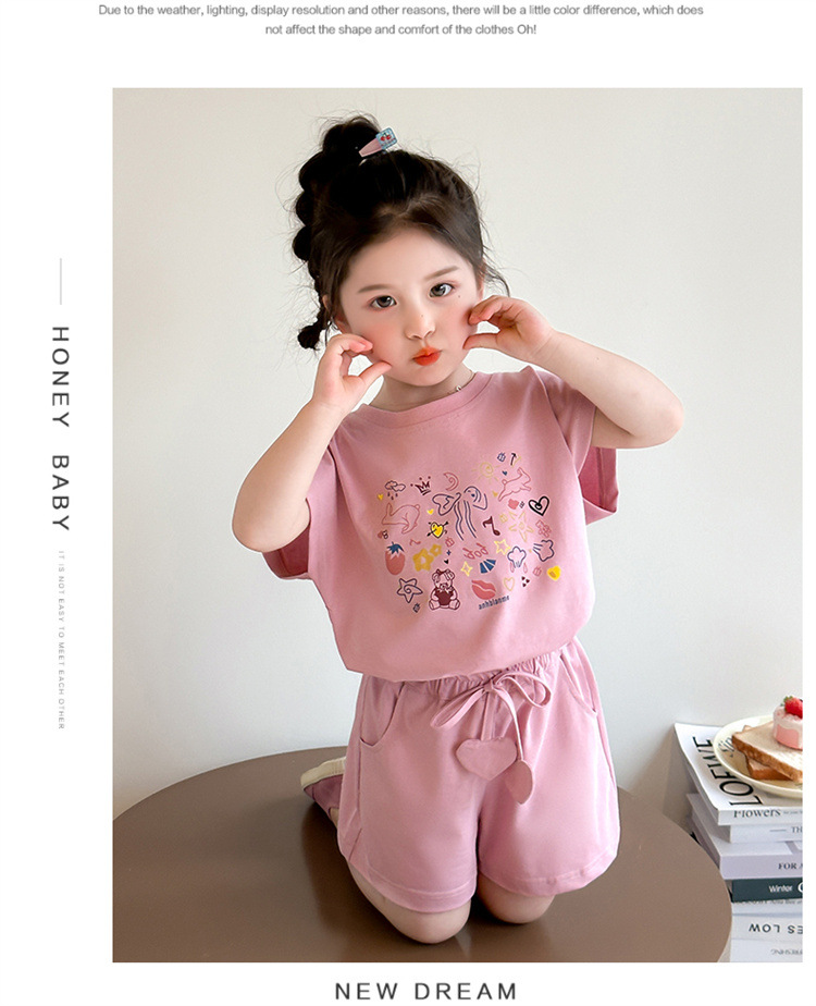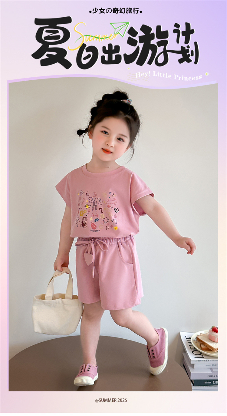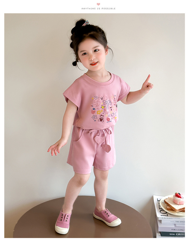 소녀 사랑 벨트 니트 세트 2025 여름 새로운 패션 소녀 세련된 투피스 어린이 여름 원피스스토어 가기