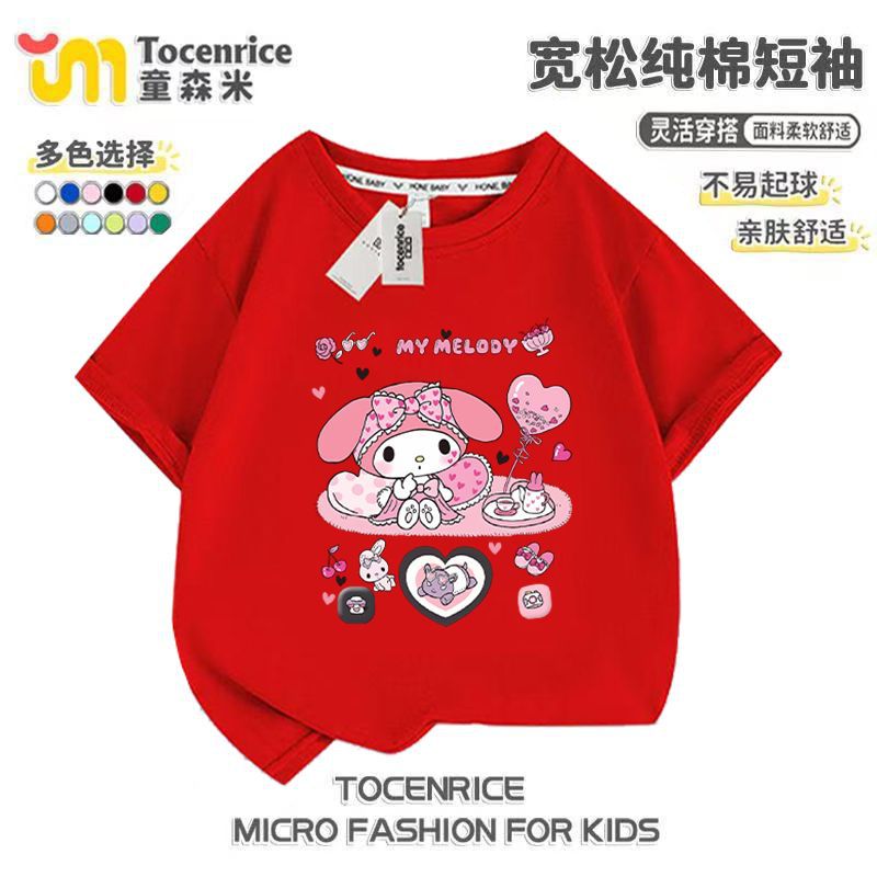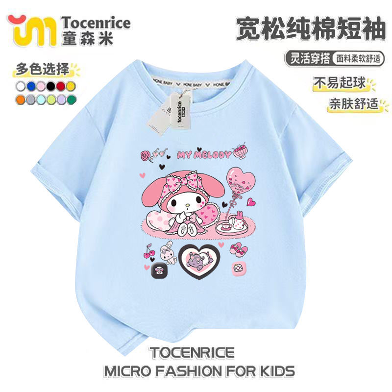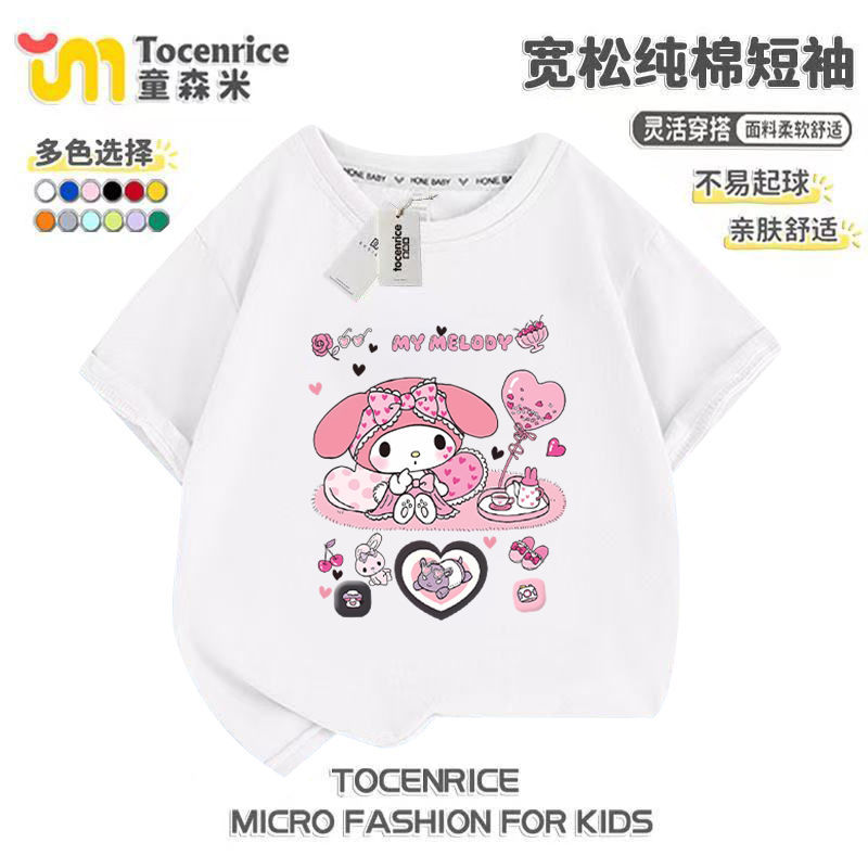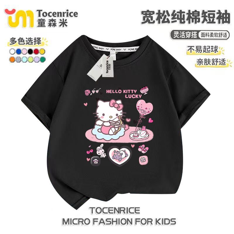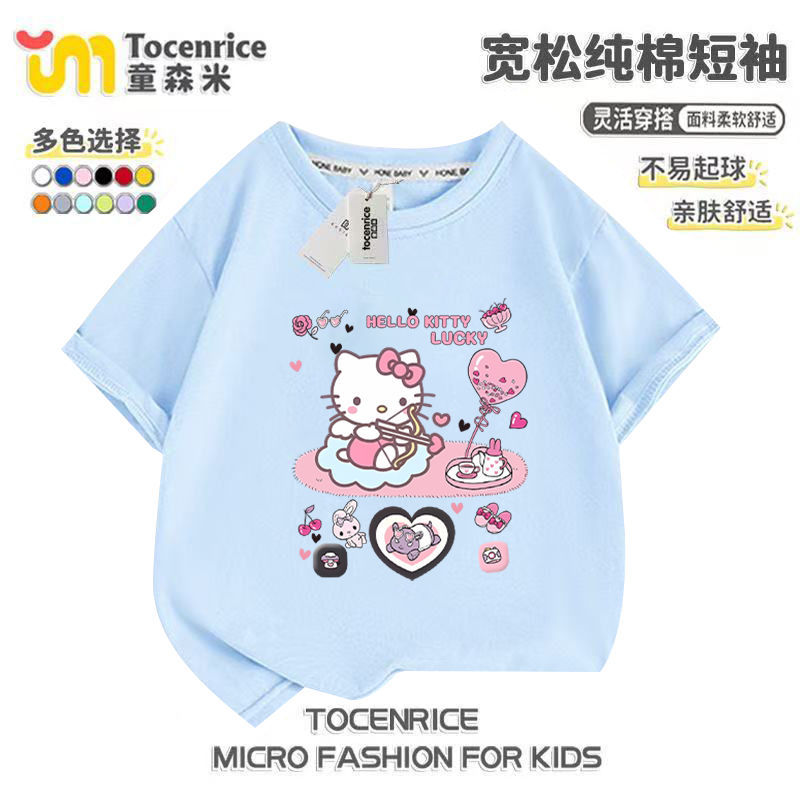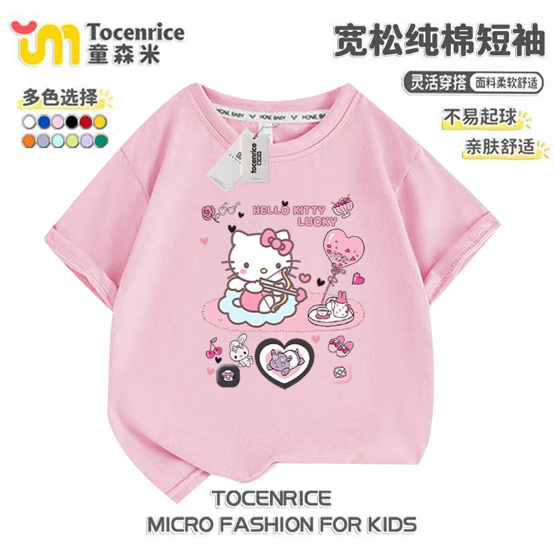 2025 새로운 메를로 반팔 티셔츠 걸스 여름 탑 옷 Kloomi 헬로 키티 걸스 반팔스토어 가기