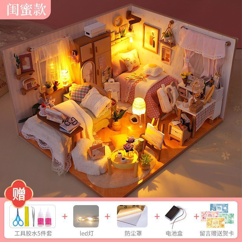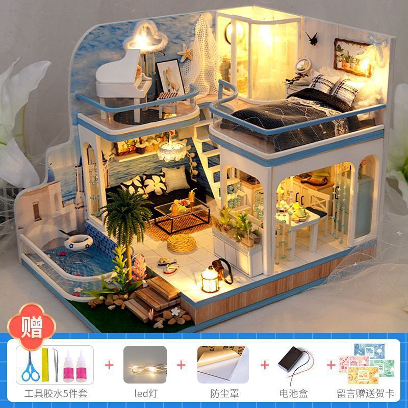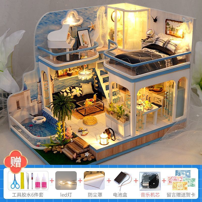 수제 오두막 중국 스타일 고대 건축 조립 된 집 모델 소녀와 소년을위한 어린이 장난감 생일스토어 가기