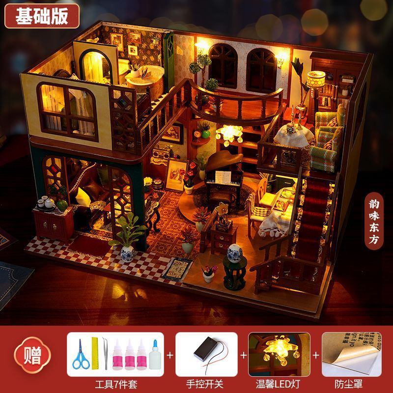 수제 오두막 중국 스타일 고대 건축 조립 된 집 모델 소녀와 소년을위한 어린이 장난감 생일