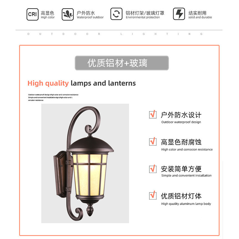 국경 간 북미 유럽 스타일의 간단한 야외 벽 램프 외부 벽 방수 안뜰 발코니 통로 빌라 복고풍 벽 램프