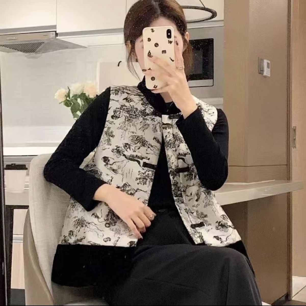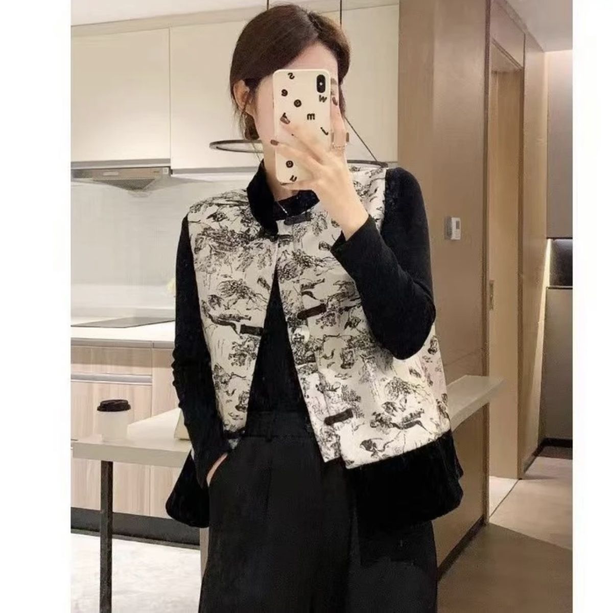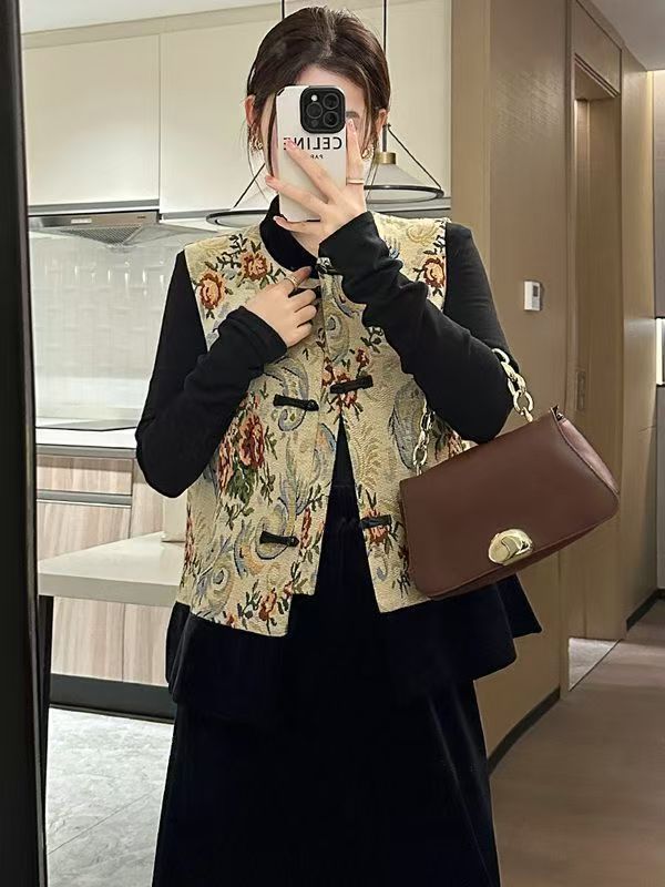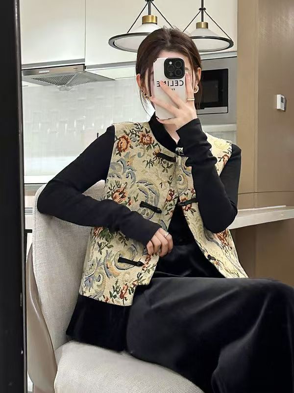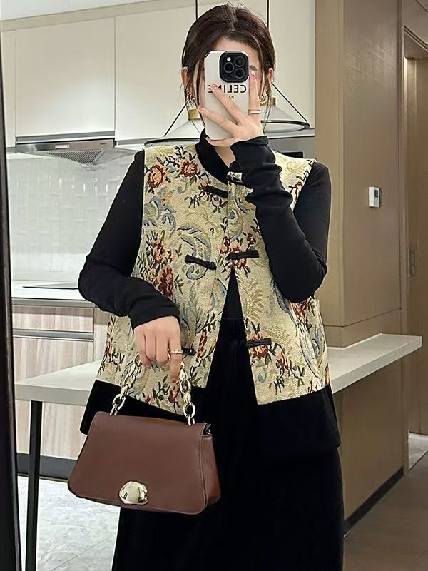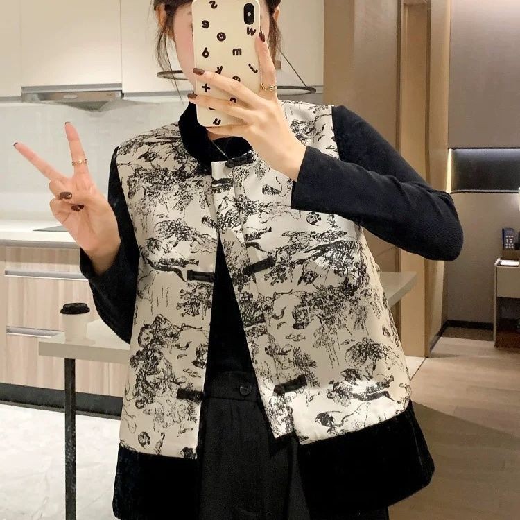 새로운 중국 스타일 중국 스타일 잉크 페인팅 조끼 여성 2025 년 봄과 가을 새로운 빈티지 버클 다목적 조끼 재킷스토어 가기