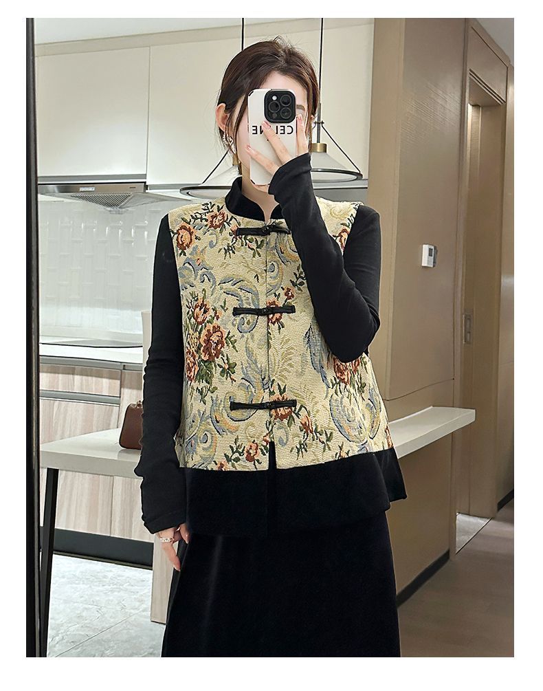 새로운 중국 스타일 중국 스타일 잉크 페인팅 조끼 여성 2025 년 봄과 가을 새로운 빈티지 버클 다목적 조끼 재킷