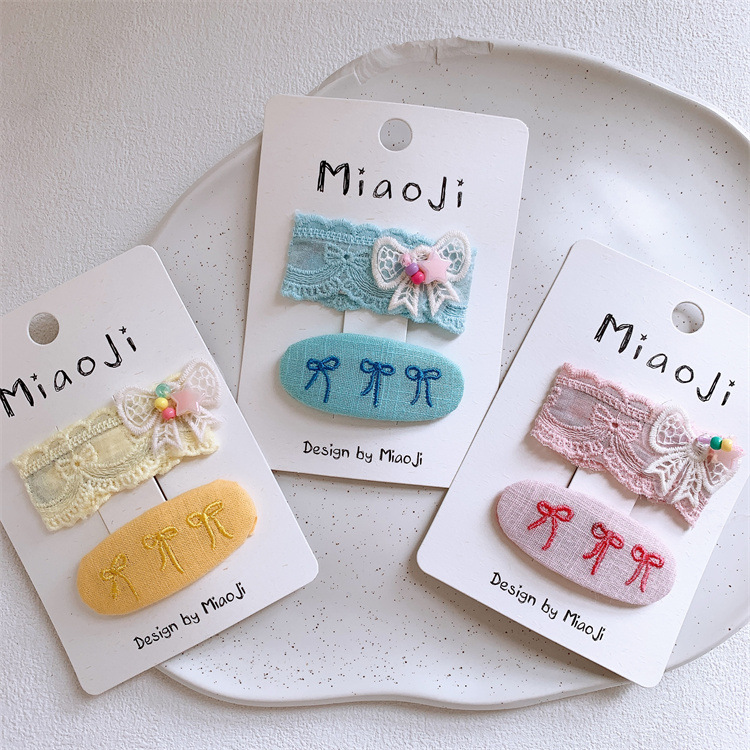 새로운 어린이 자수 활 머리핀 달콤한 소녀 원단 타원형 부러진 머리 BB 클립 측면 클립 머리핀