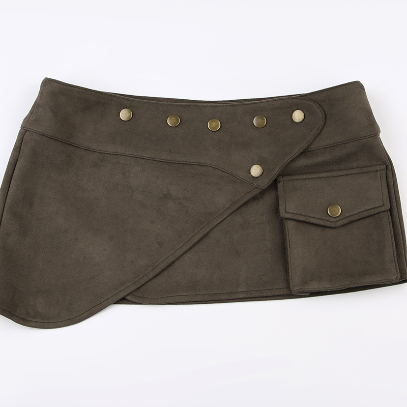아메리칸 워크웨어 스타일 리벳 포켓 스플라이싱 레트로 스커트 핫걸 스트리트 섹시 로우 웨이스트 슬리밍 힙 커버 스커트