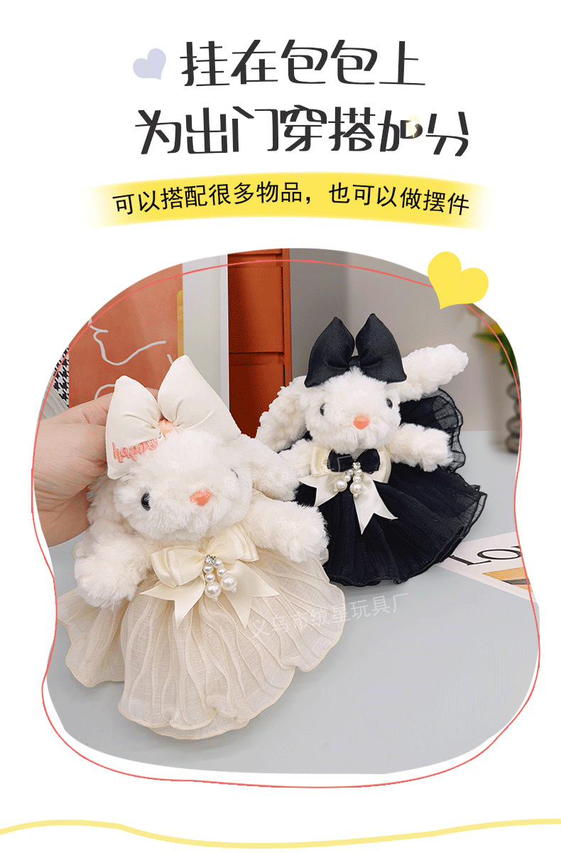 새로운 진주 활 귀 토끼 인형 가방 펜던트 달콤한 착용 봉제 긴 귀 토끼 인형 선물스토어 가기