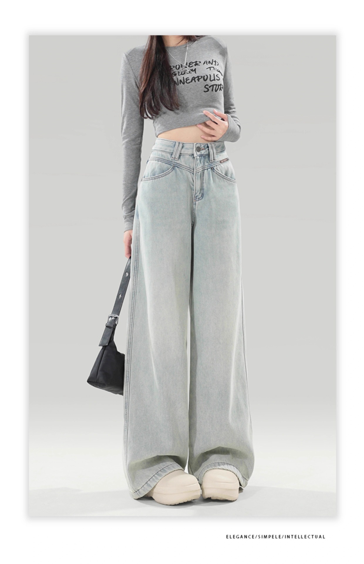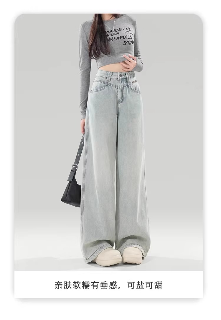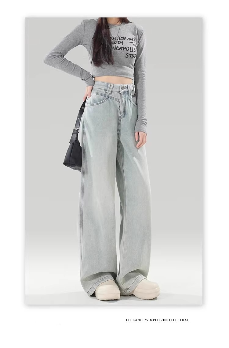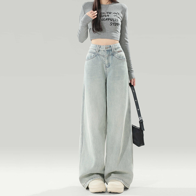 높은 허리 넓은 다리 청바지 여성의 2025 년 봄과 여름 새로운 느슨한 BF 게으른 스타일 아메리칸 스타일 레트로 스트레이트 바지스토어 가기