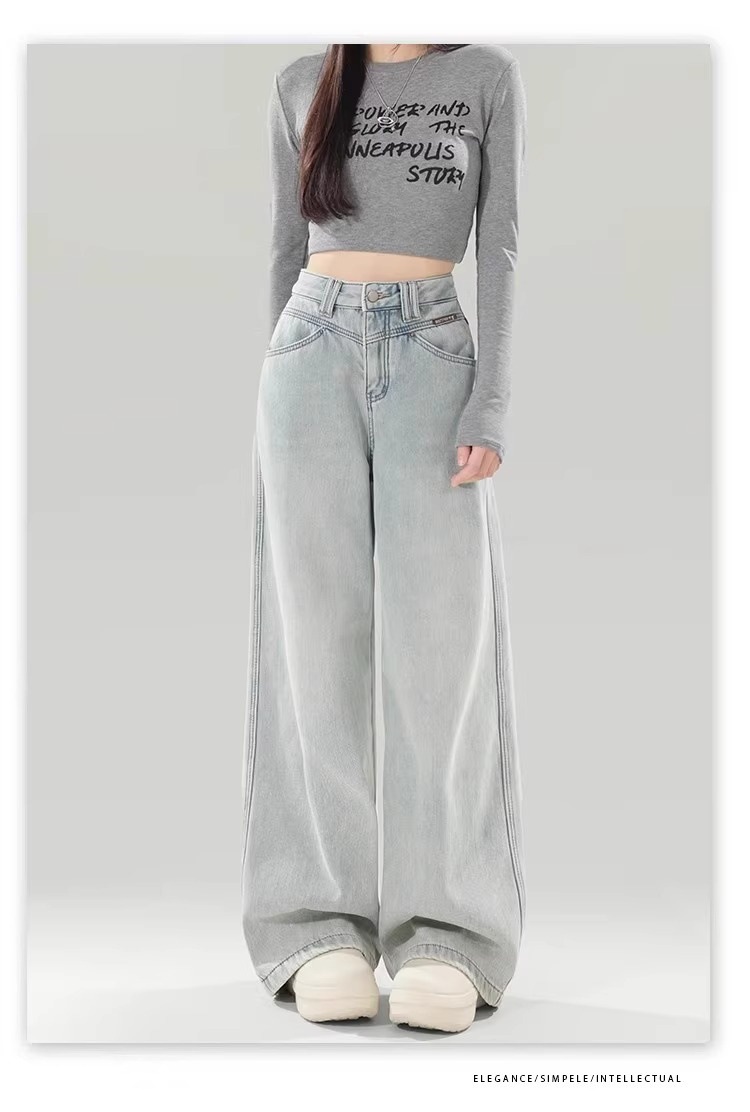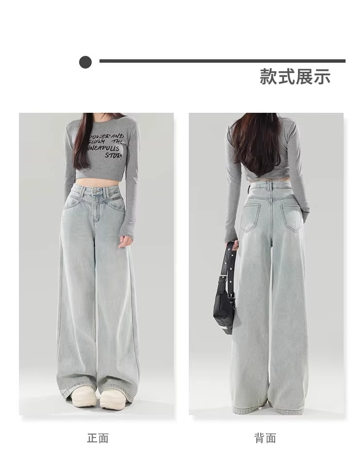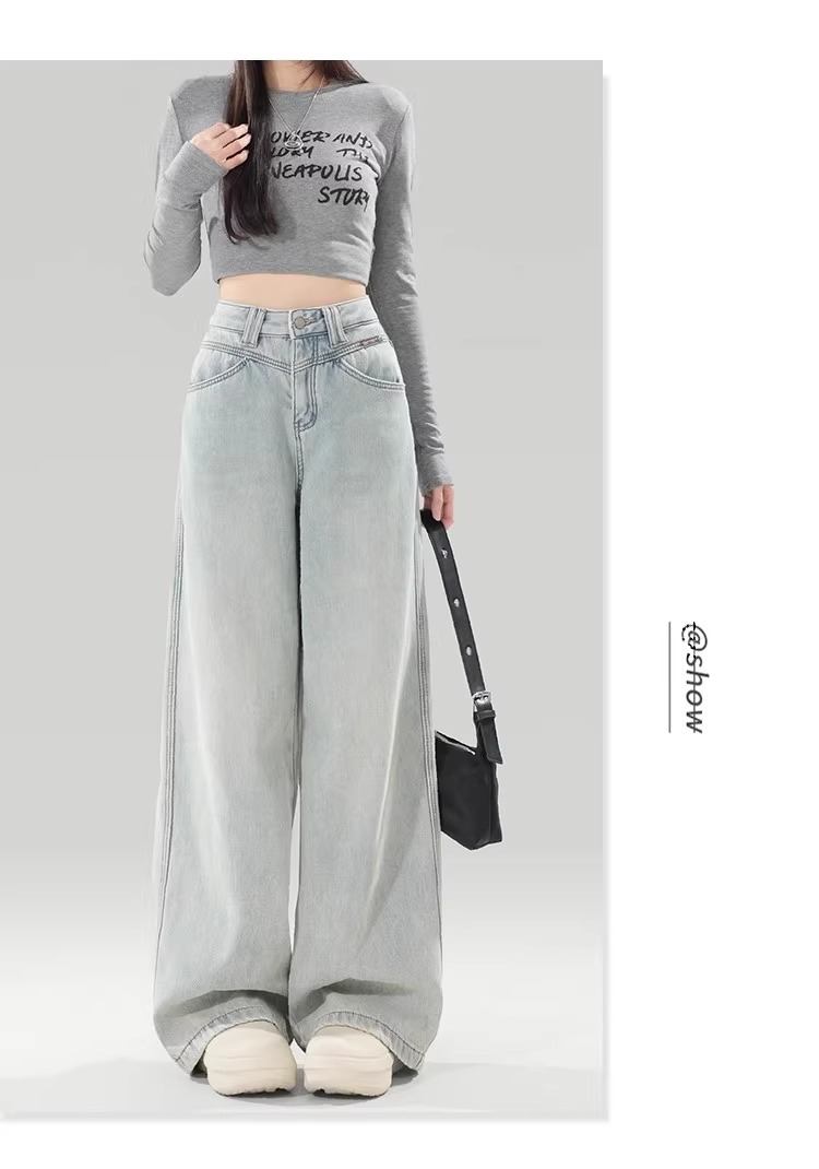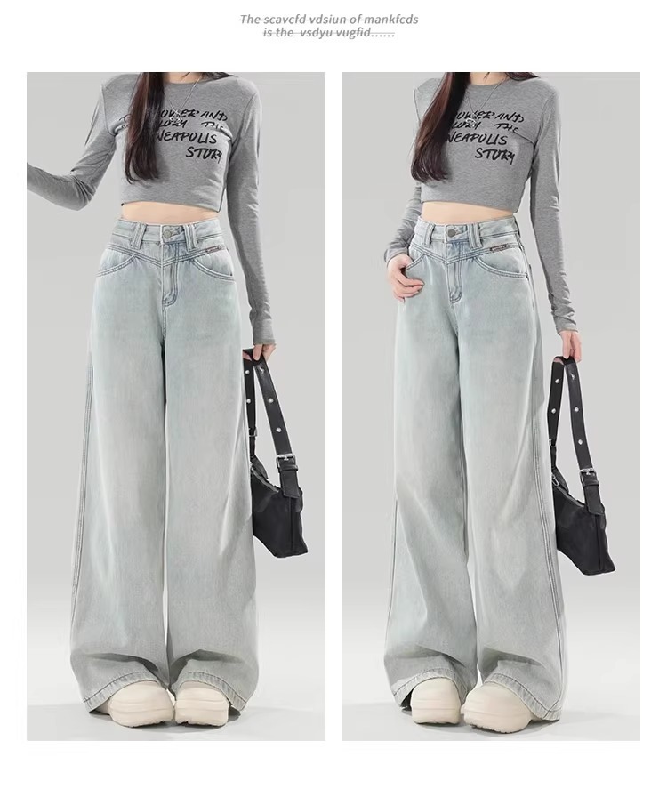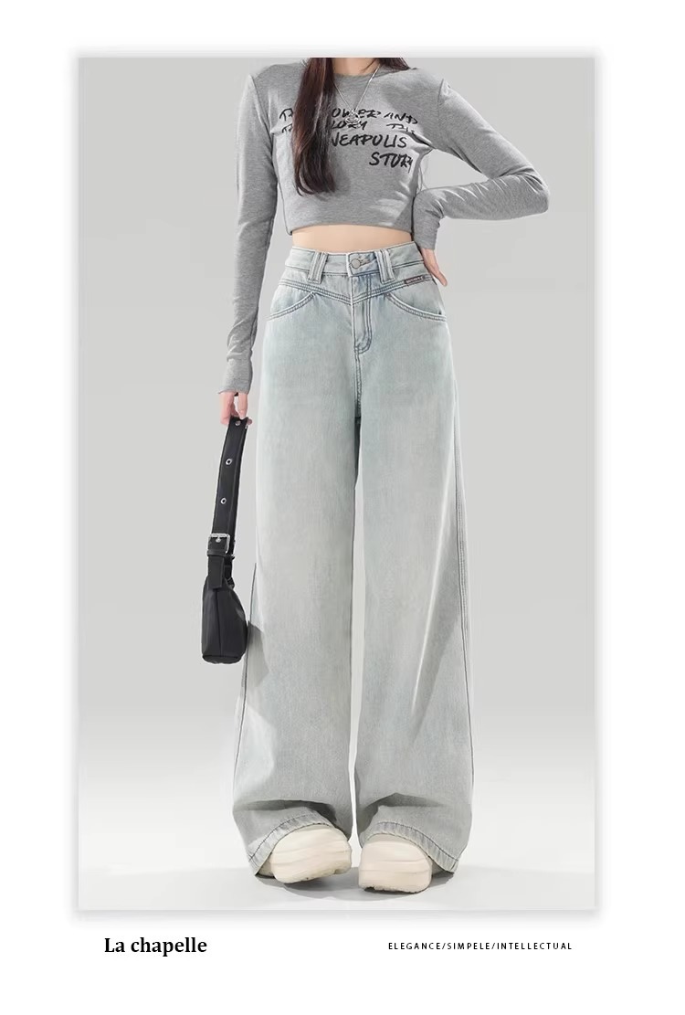 높은 허리 넓은 다리 청바지 여성의 2025 년 봄과 여름 새로운 느슨한 BF 게으른 스타일 아메리칸 스타일 레트로 스트레이트 바지스토어 가기