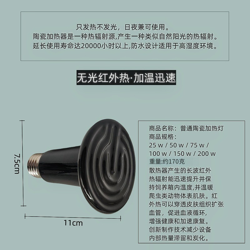 冬季加热首选:快速提升环境温度,避免爬宠进入冬眠状态。