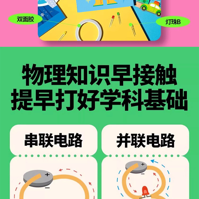 매직 종이 회로 DIY 수제 자체 제작 재료 패키지 어린이 소년 교육 과학 실험 빛나는 인사말 카드 장난감스토어 가기