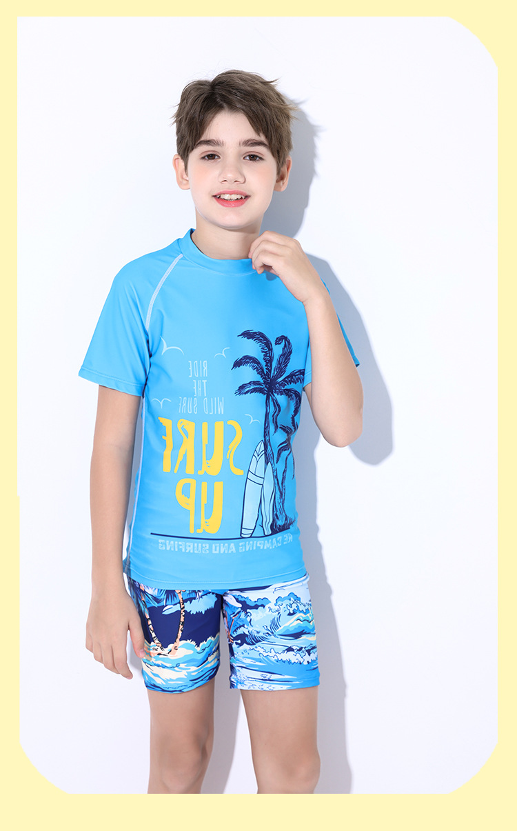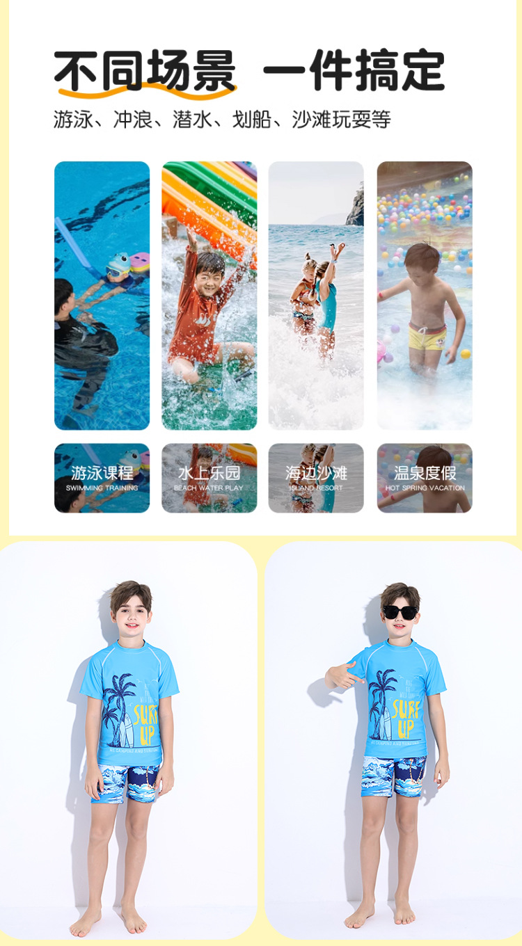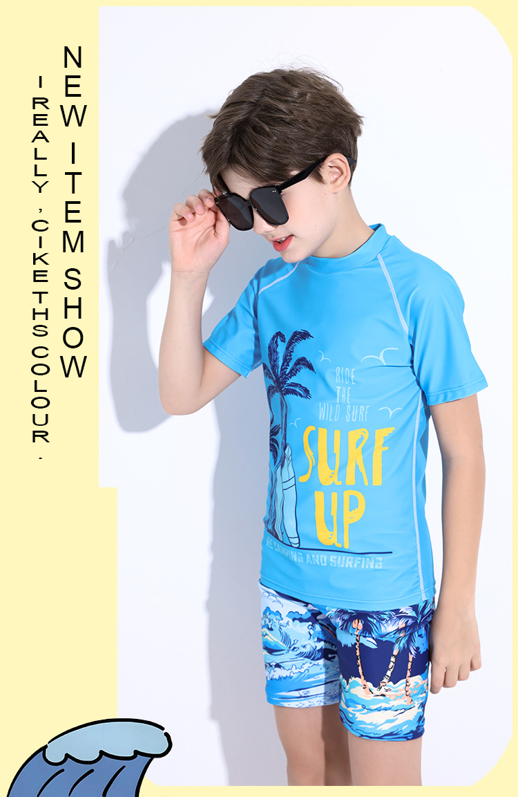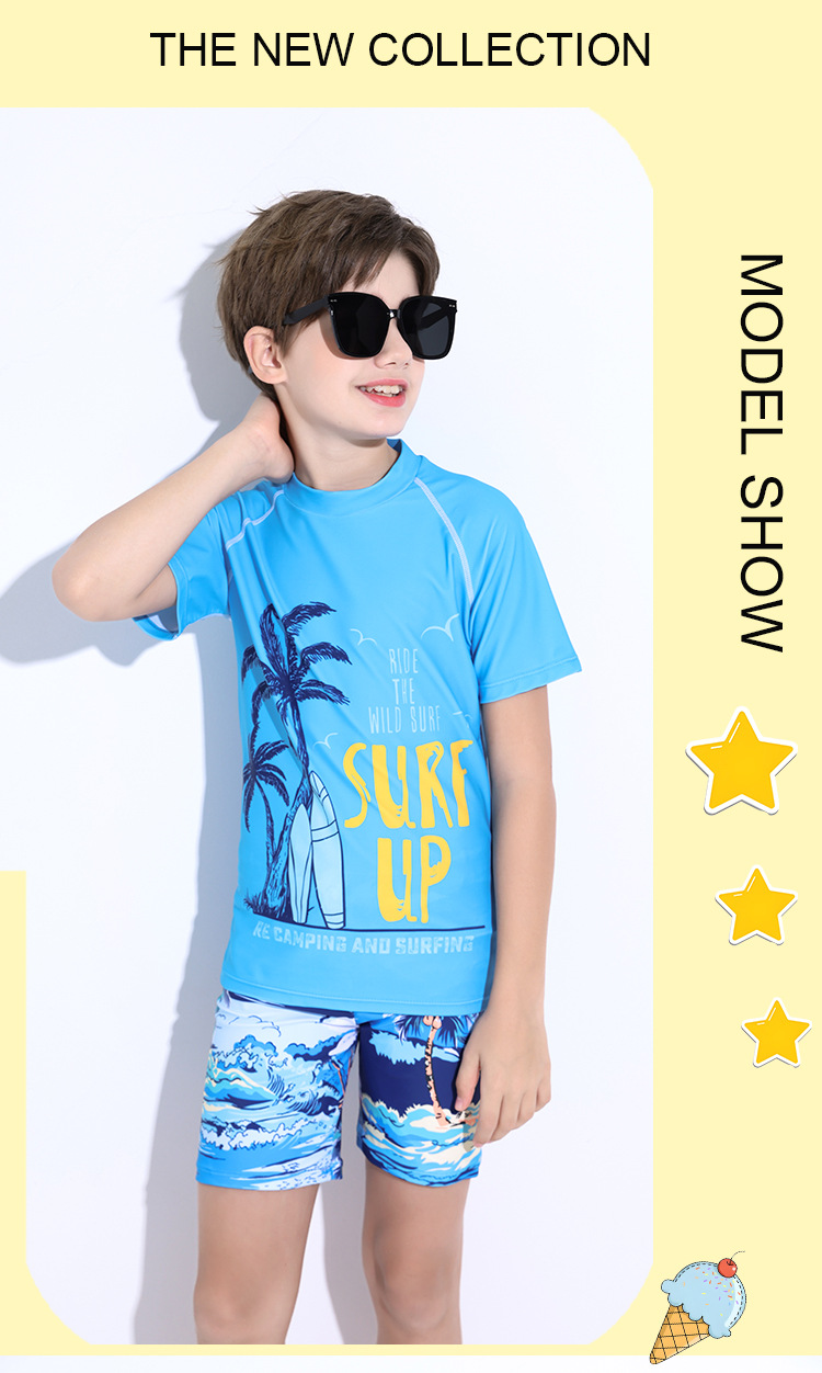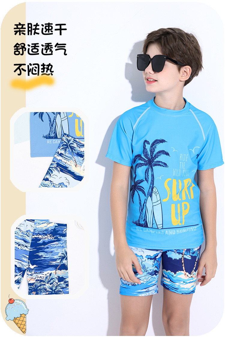 한국 스타일의 새로운 어린이 수영복, 반팔 투피스 세트, 사각팬티, 중대형 어린이 남아 온천 수영복