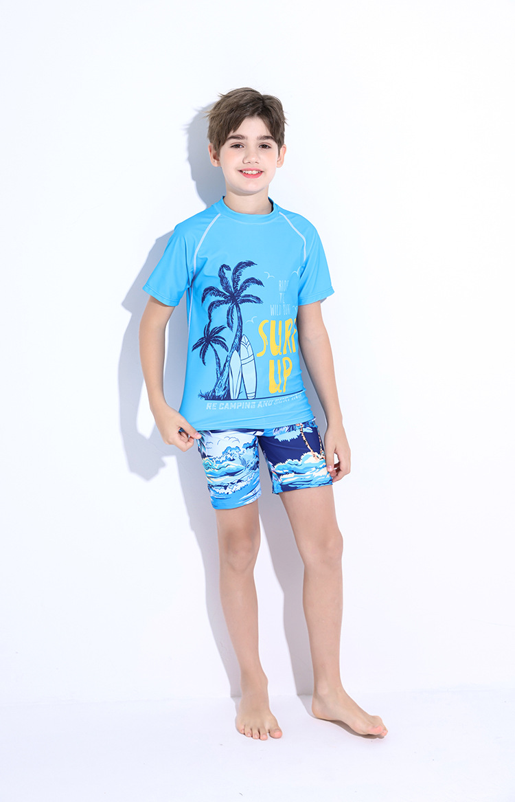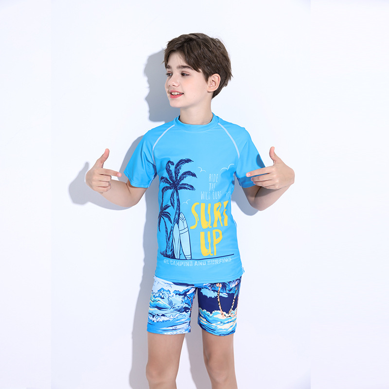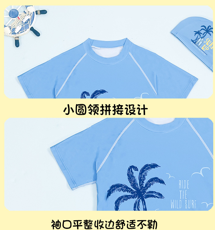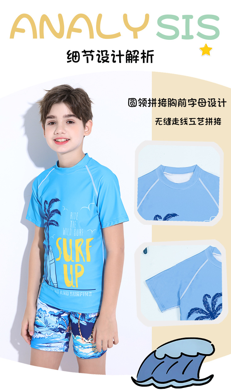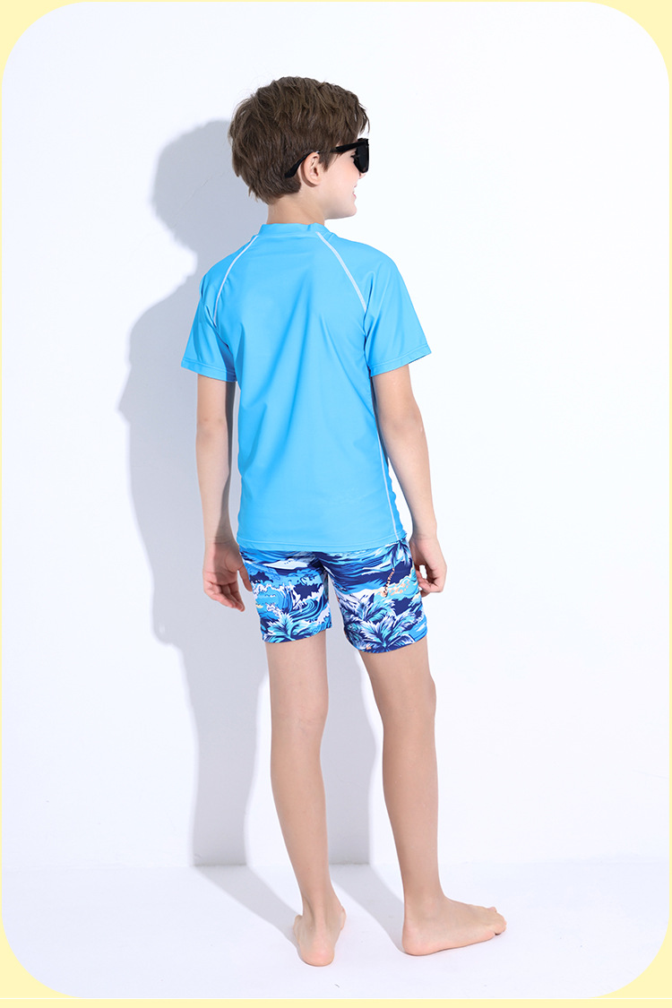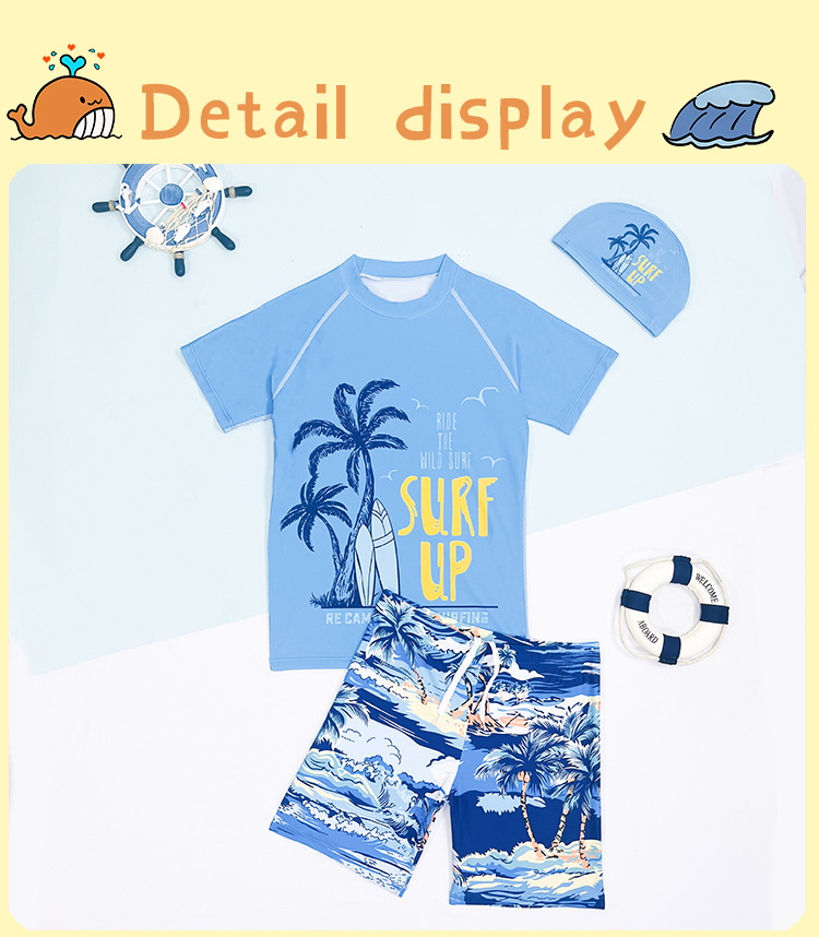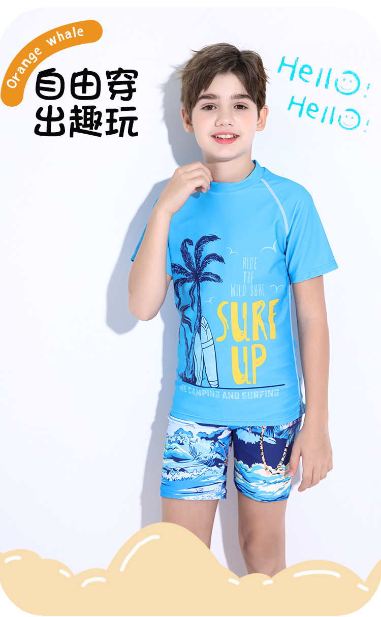 한국 스타일의 새로운 어린이 수영복, 반팔 투피스 세트, 사각팬티, 중대형 어린이 남아 온천 수영복