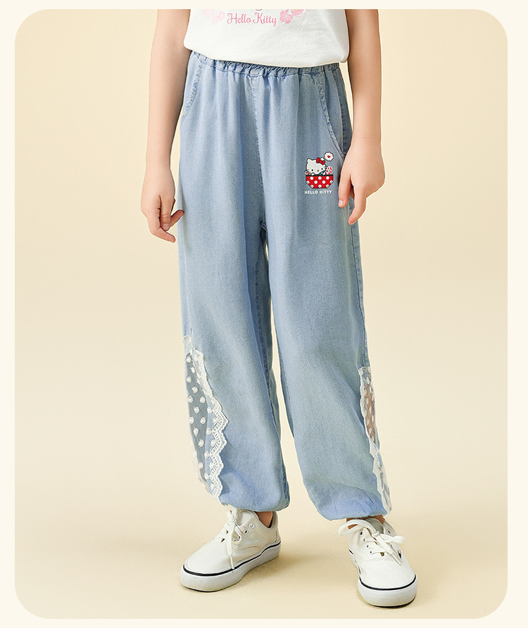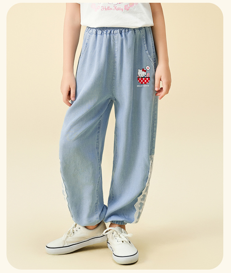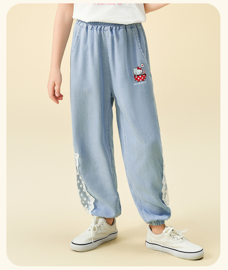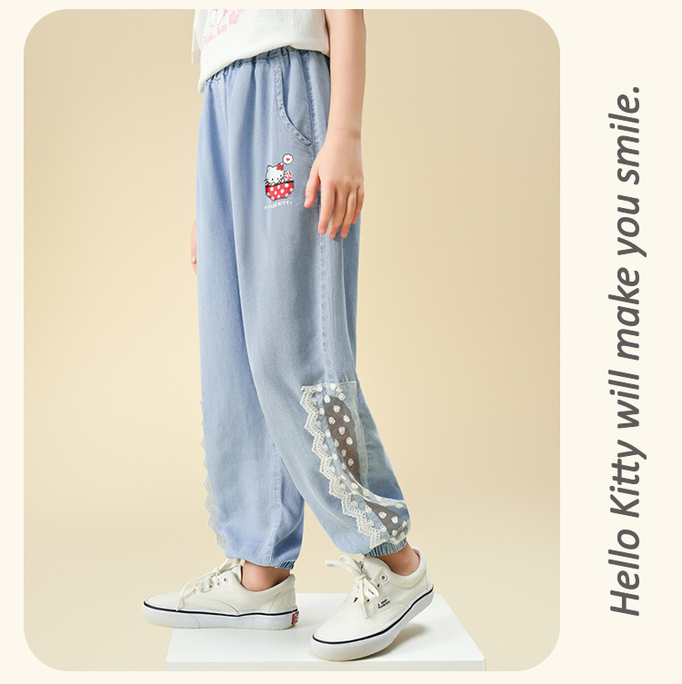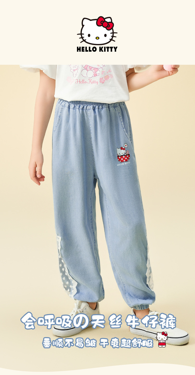헬로 키티 어린이 여름 텐셀 청바지 2025 소녀의 서양식 편안한 캐주얼 바지스토어 가기