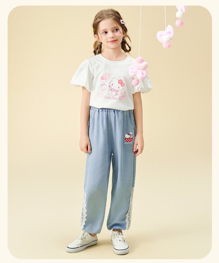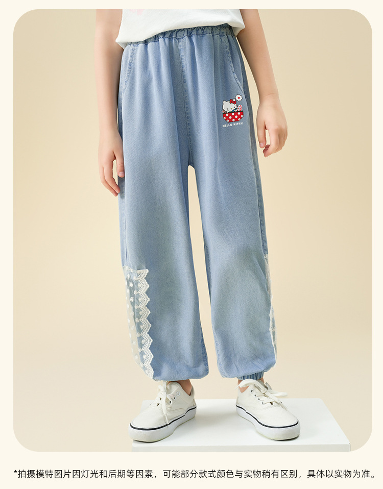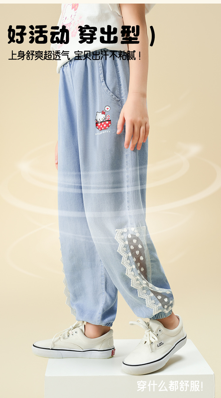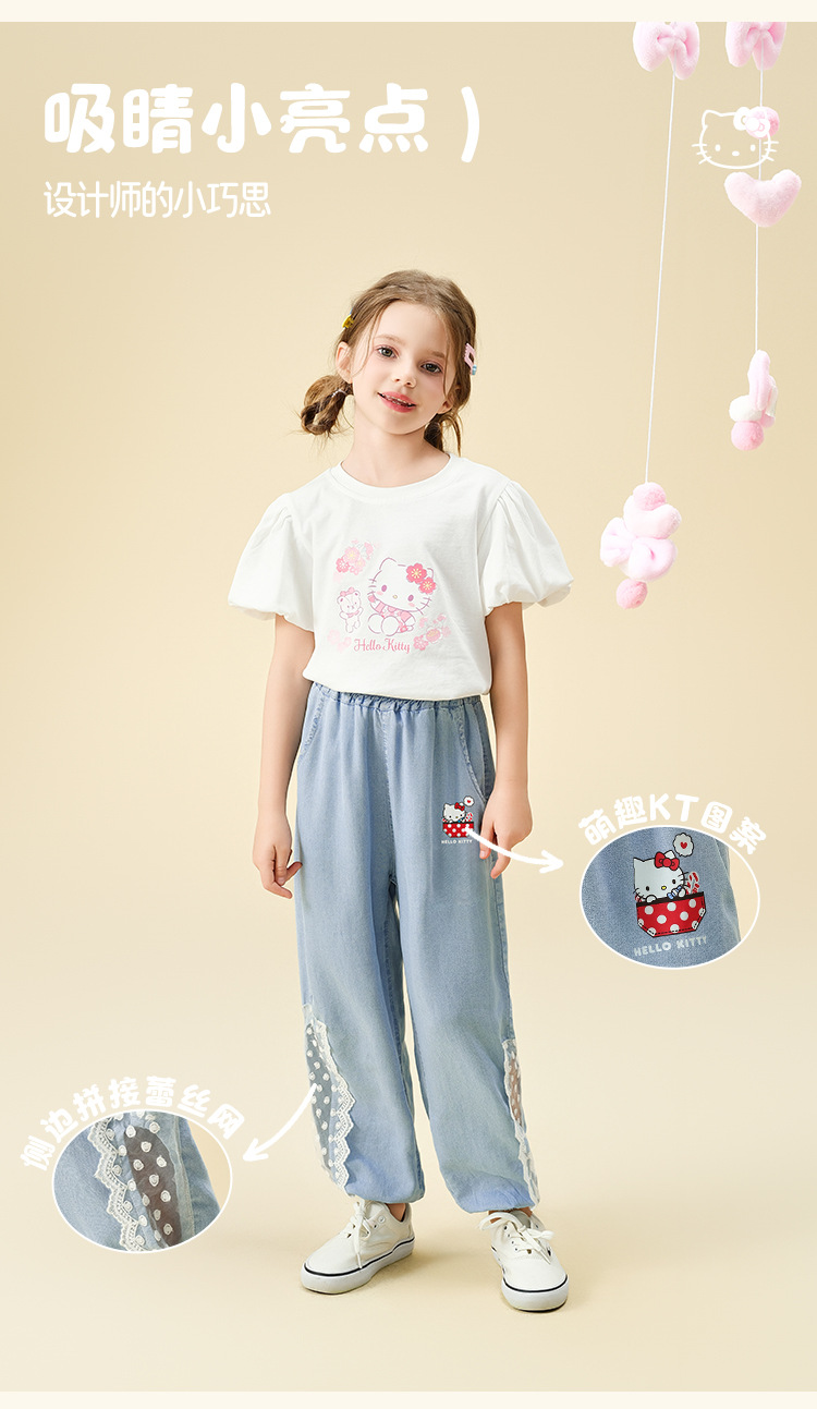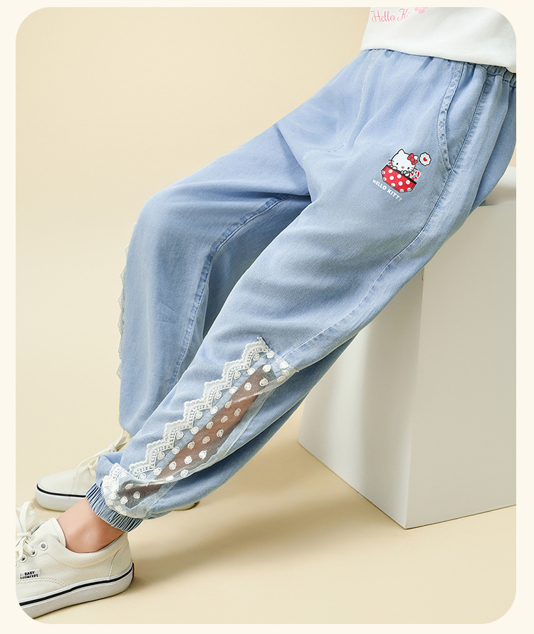 헬로 키티 어린이 여름 텐셀 청바지 2025 소녀의 서양식 편안한 캐주얼 바지스토어 가기