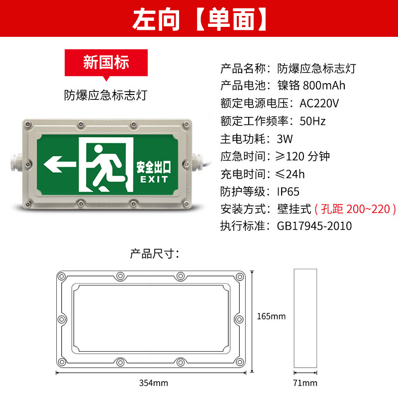 Bashi 안전 방폭형 화재 비상 표시등 안전 출구 대피 표시등 IP65 방수 및 방폭 표시등