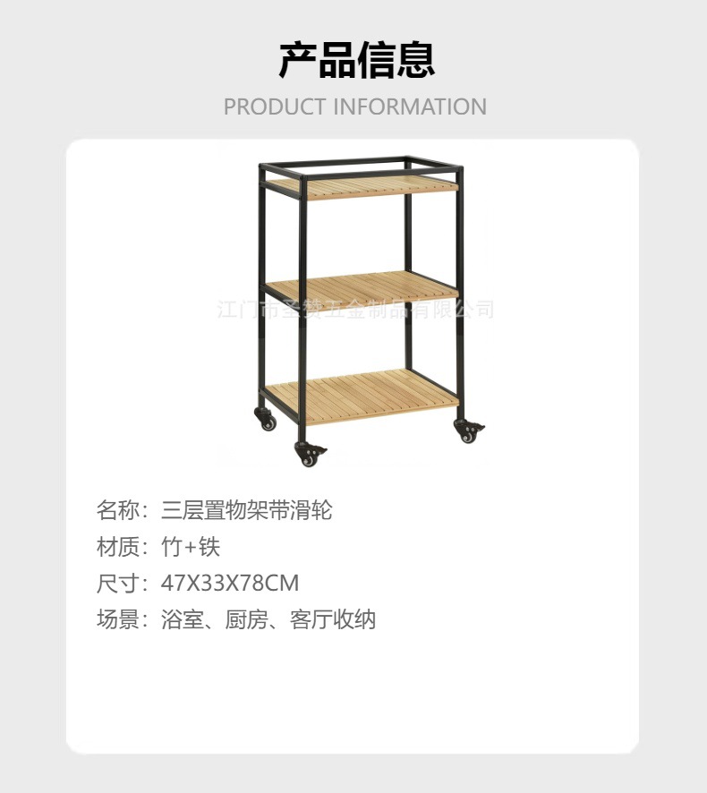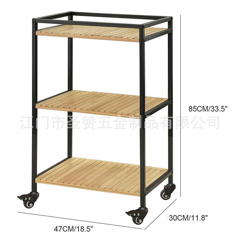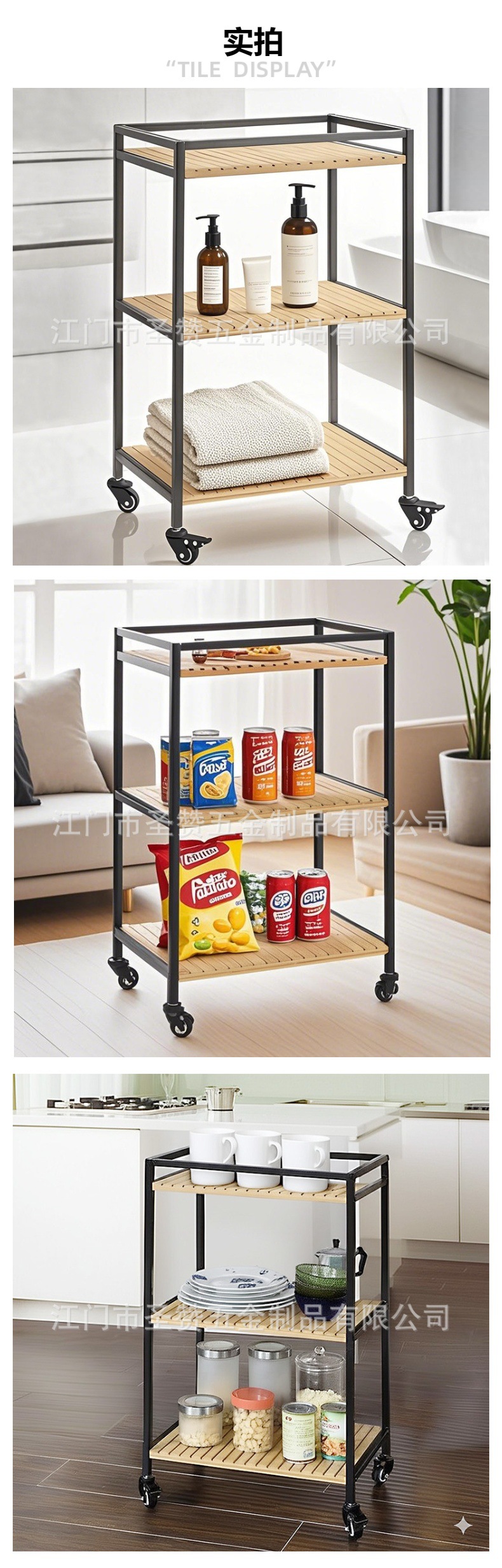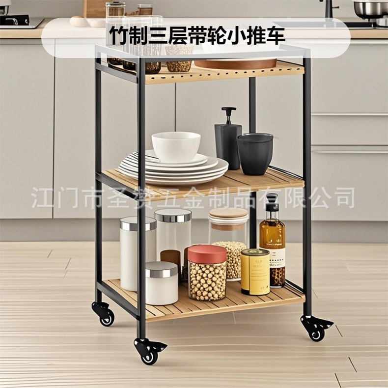 금속 프레임이 있는 3단 대나무 트롤리, 이동식 스낵 보관함, 주방 및 거실 잔해물 바닥 보관함스토어 가기