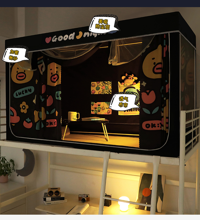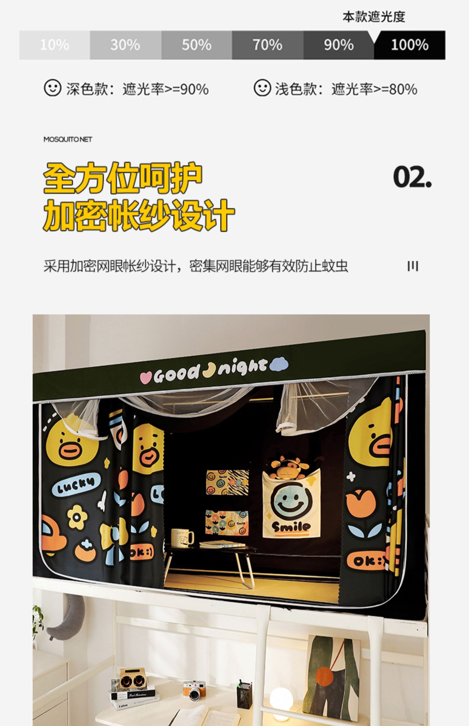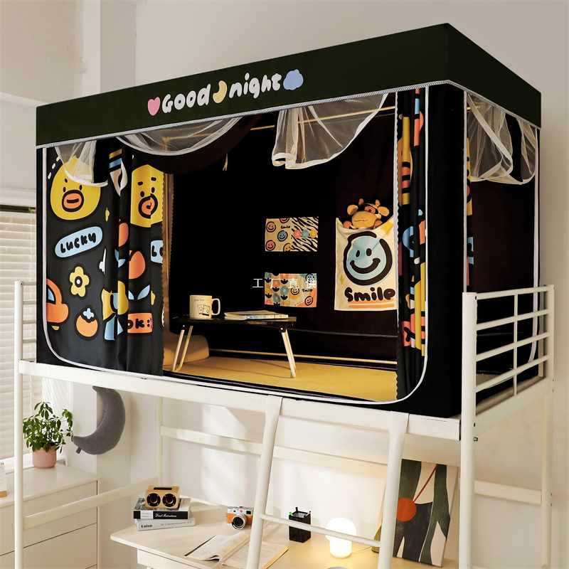 ✅ 차광 침대 커튼과 모기장이 통합된 대학 기숙사 이층 침대 커튼과 커튼 침실 두꺼운 브래킷 카드 포함스토어 가기