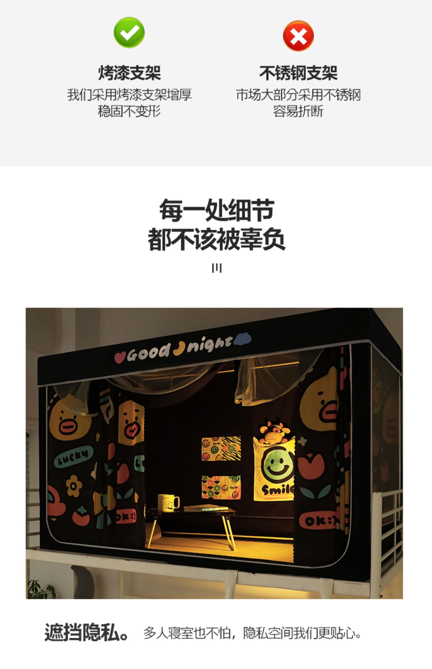 ✅ 차광 침대 커튼과 모기장이 통합된 대학 기숙사 이층 침대 커튼과 커튼 침실 두꺼운 브래킷 카드 포함