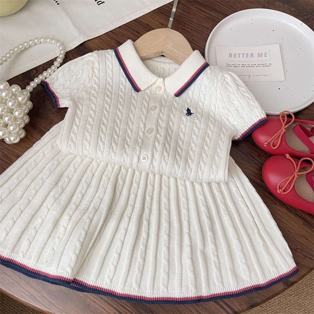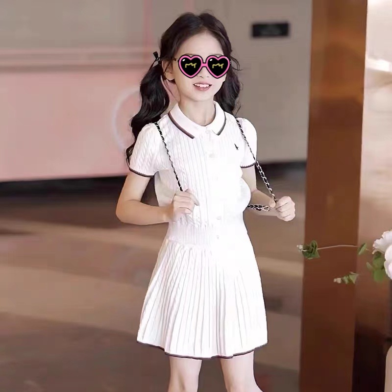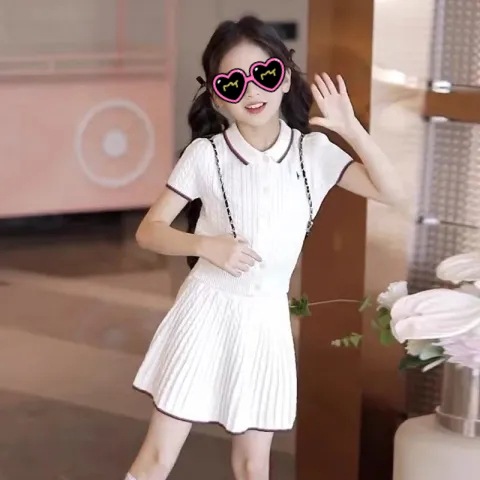 여름 새 소녀 니트웨어 세트 반팔 옷깃 카디건 하프 스커트 투피스 세트 학술 스타일 탑 하프 스커트
