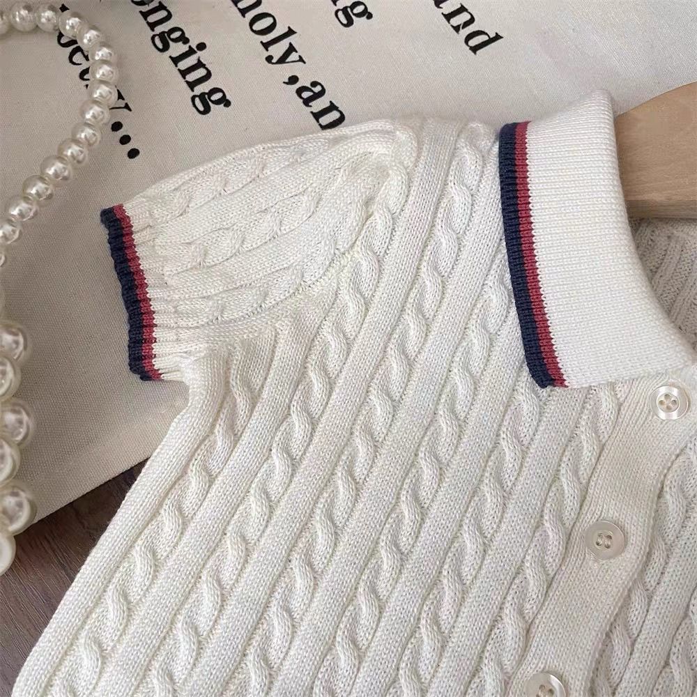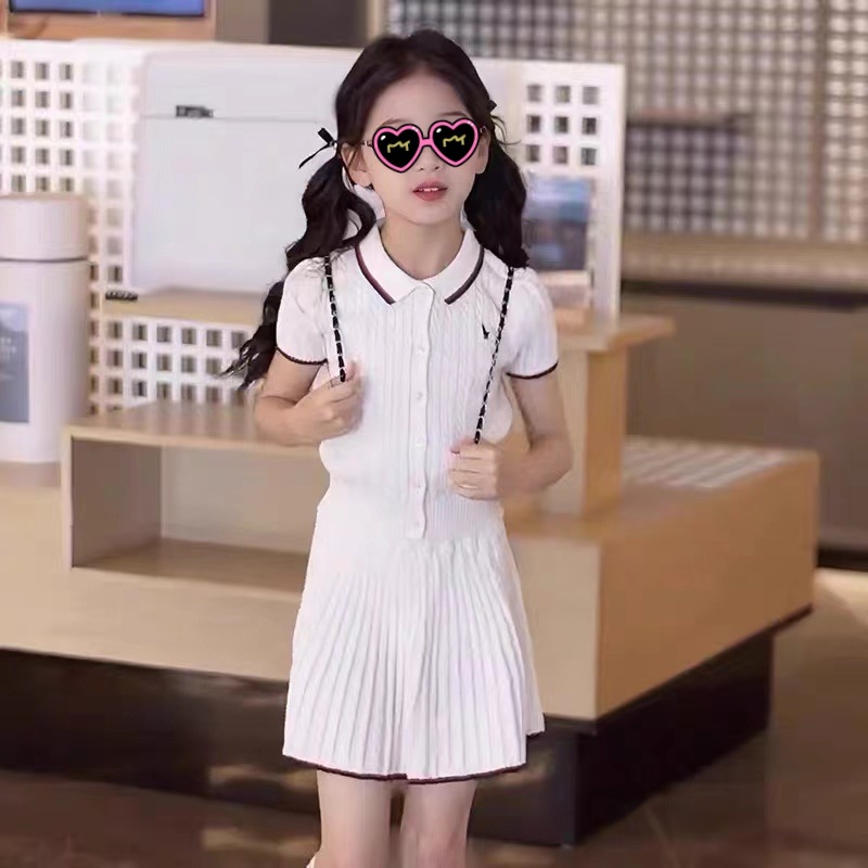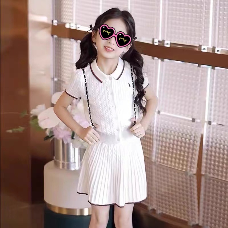 여름 새 소녀 니트웨어 세트 반팔 옷깃 카디건 하프 스커트 투피스 세트 학술 스타일 탑 하프 스커트스토어 가기