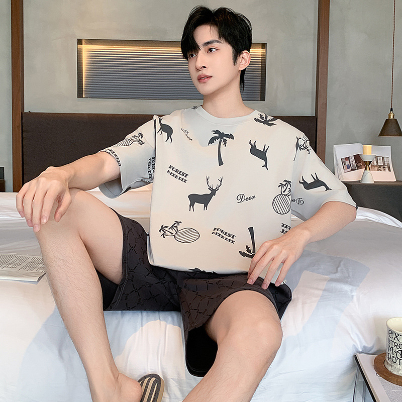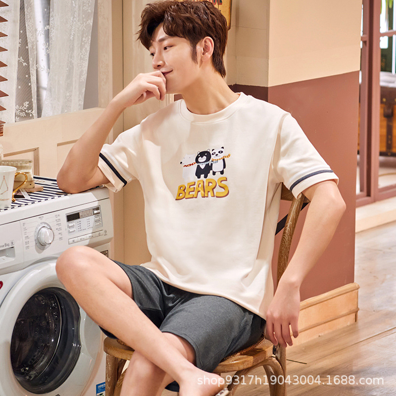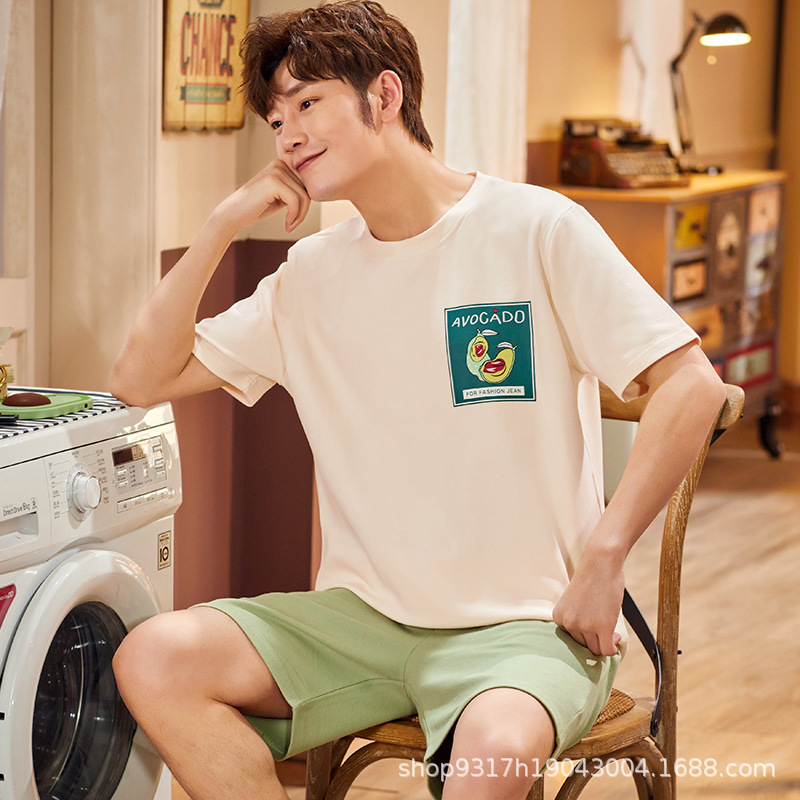 과일 2025 에 의해 새로운 소년 면 느슨한 캐주얼 한국 스타일 코튼 짧은 소매 반바지 잠옷 홈 의류스토어 가기