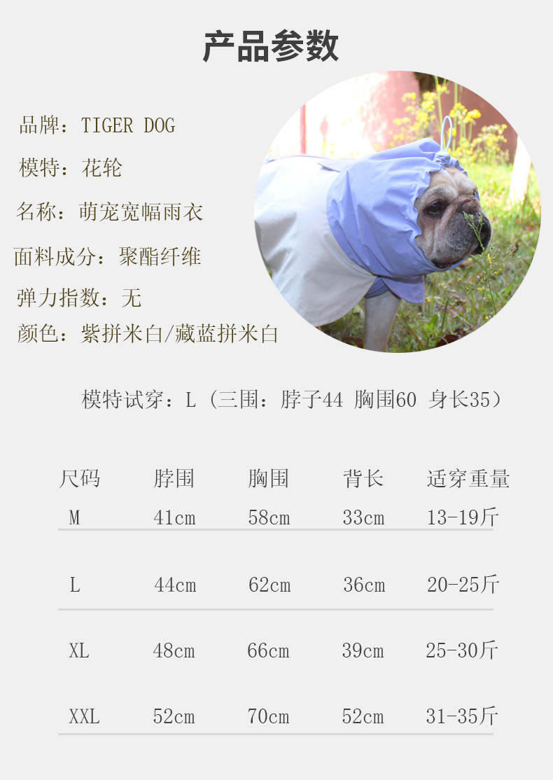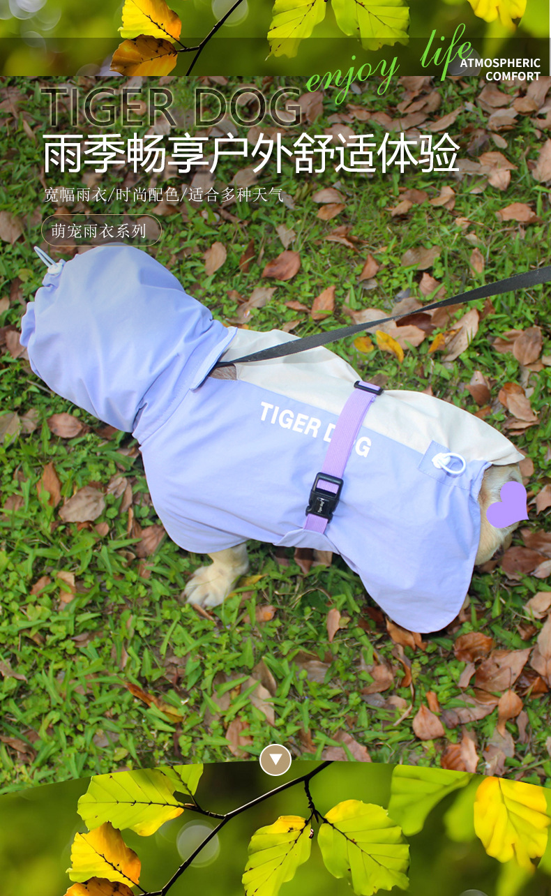 TIGERDOG 애완견 비옷 방수 비 옷 작은 개 중형 개 강아지 프렌치 도우 모든 항목을 포함하는 판초